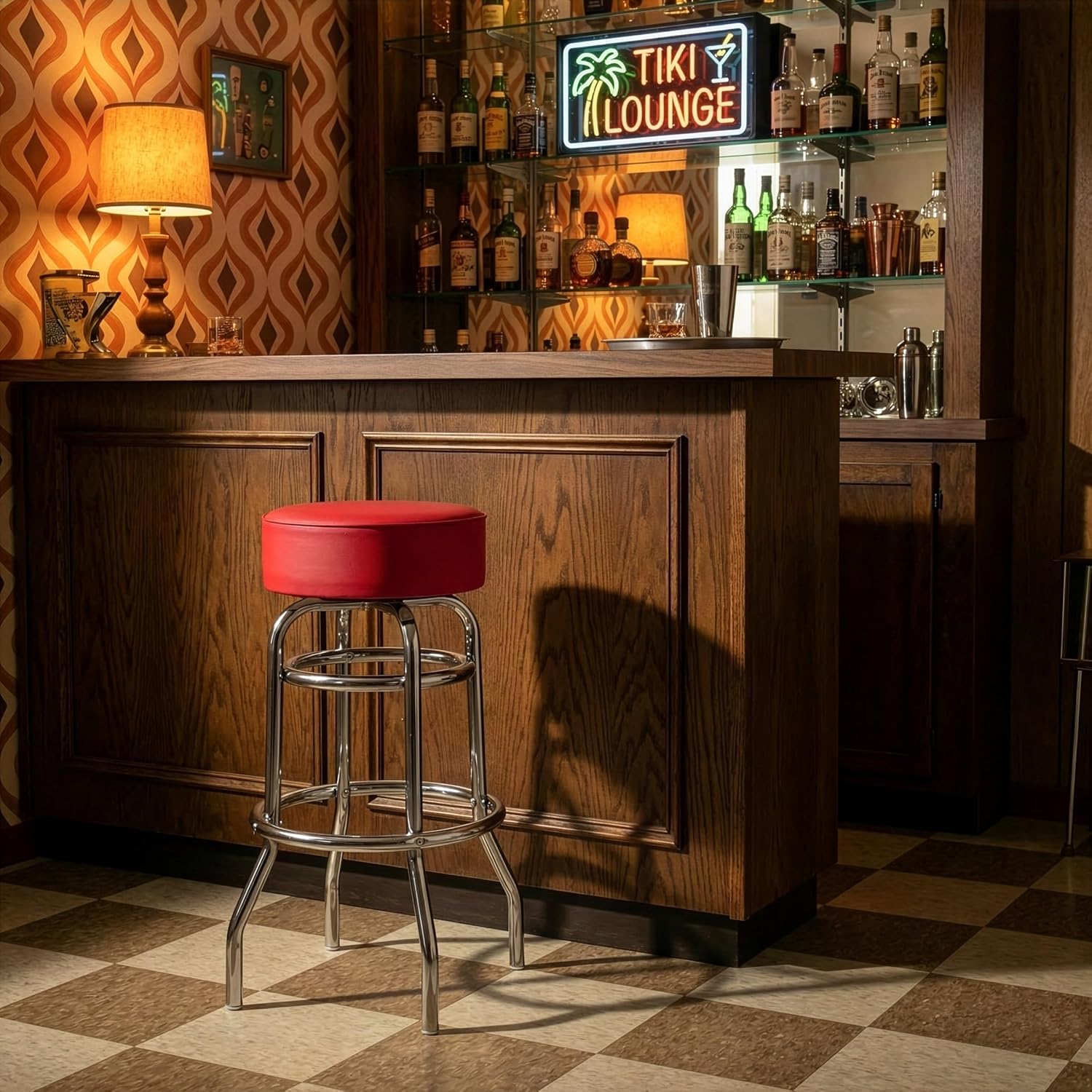 The Bar Stools by Trademark Gameroom will provide you and your guests with a comfortable seat as well as a stylish accent to your game room, garage, or collection. The bar chair seat features durable marine grade vinyl sides, and the top is trimmed with quarter inch vinyl beading for added durability. The stool chair comes equipped with luxurious foam padding, a 360-degree swivel, and chrome double rung reinforced legs made of tubular steel that is both lightweight and supportive. Bring style, function, and comfort to your basement, bar, or workshop with the sporty counter stools.
