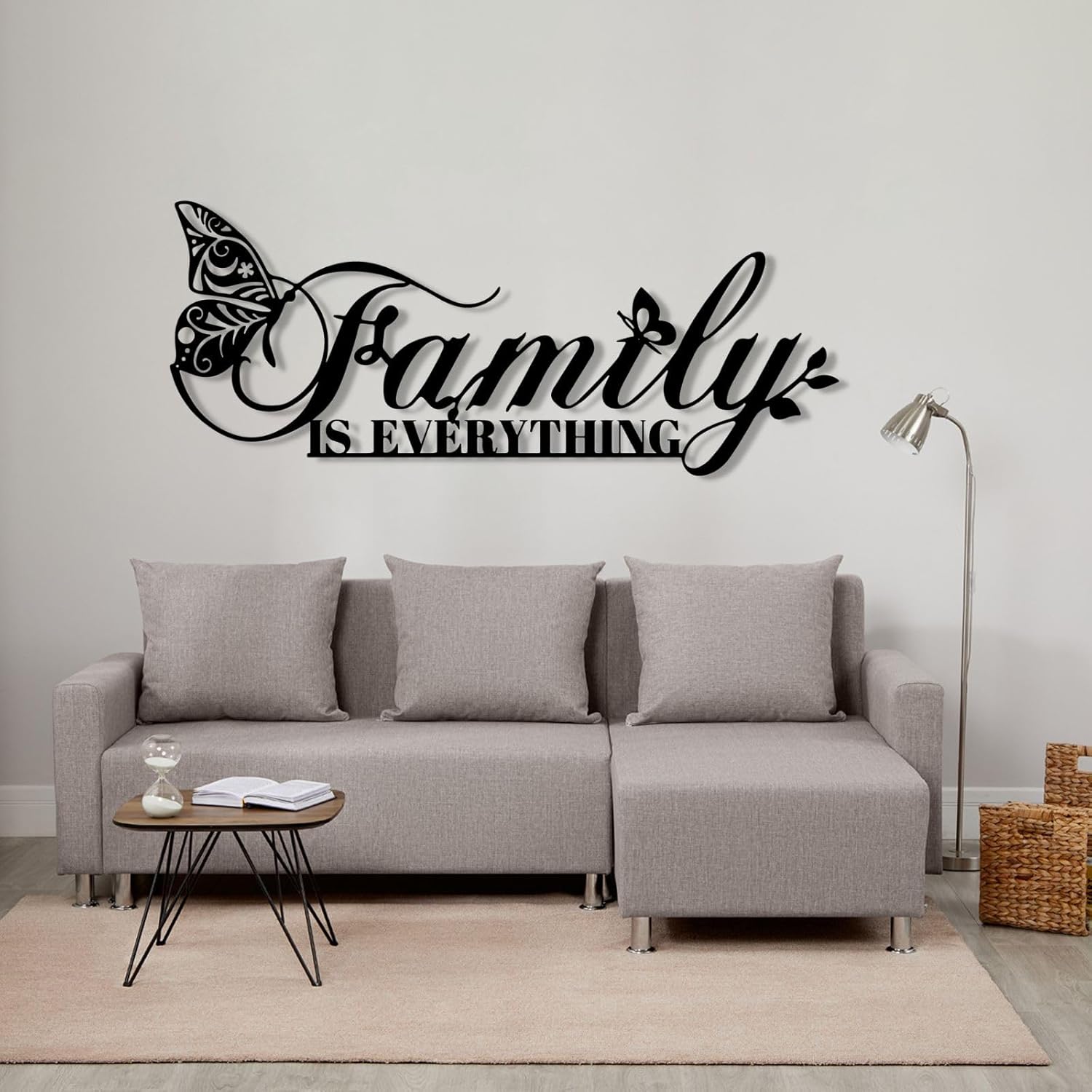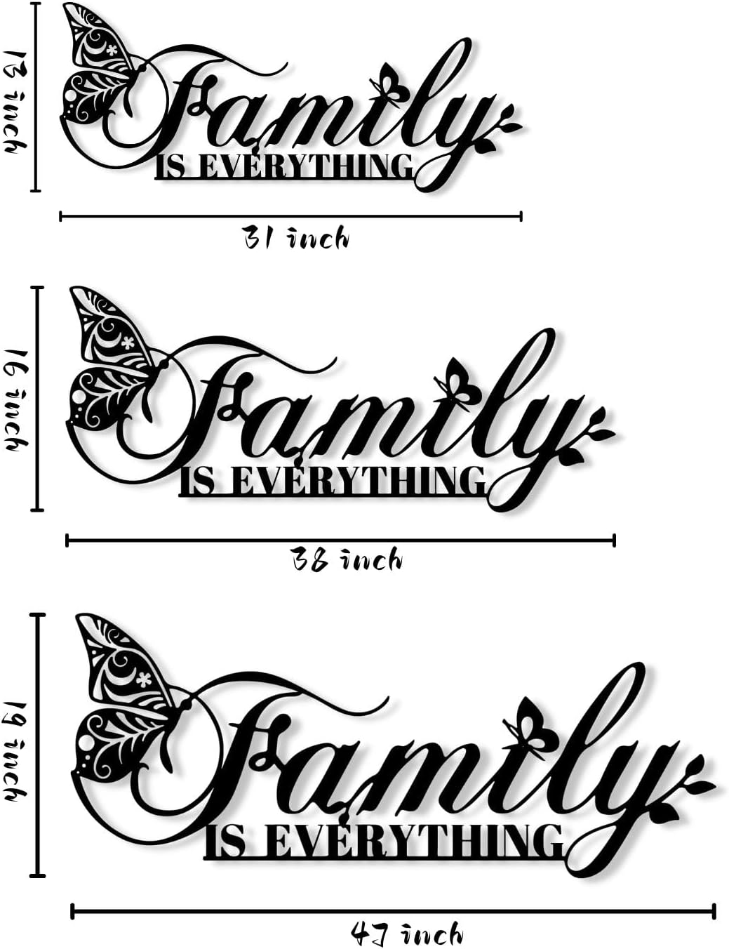 Butterfly Metal Wall Art This set includes 1 x "Family is Everything" black metal lettering sign decoration, comes with screws, bolts and other auxiliary materials. Decorate your home to make it more attractive so as to get rid of the monotony of weekdays. Unique Design Family is everything because family is the soul of happiness. We designed this family metal decorative painting to make the family more united and happy, adding vivid elements of butterflies and leaves to increase the love of life and cozy atmosphere. Wide Application This metal family sign is not only a good choice for housewarming, wedding anniversary, all kinds of festivals and birthdays, but also can decorate your family photo wall, bedroom, living room, door, kitchen or dining room, make your wall icing on the cake. A Beautiful Gift Family is everything metal letter signs are exquisitely designed and perfect for birthday, holiday or housewarming gifts for family, friends, neighbors and relatives. Material: Metal Color: Black, White, Gold, Silver Size: 31x13 inches / 78x32 cm 38x16 inches / 97.3x40 cm 47x19 inches / 119x49 cm Package Includes: 1 x Butterfly Metal Wall Art Attention: Handmade measurement, slight error in size. Due to different brand of monitors, actual wall art colors may be slightly different from the product image.