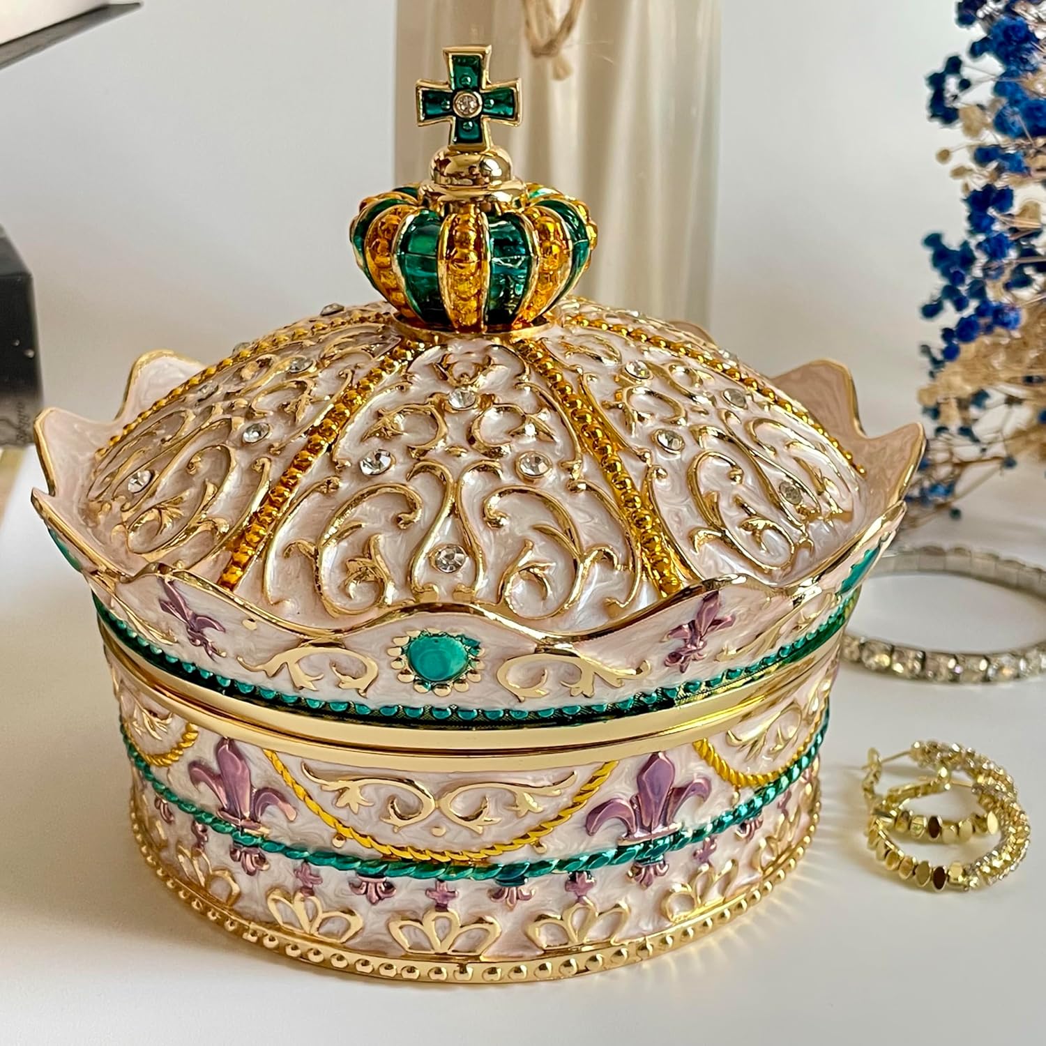 Scenario Great Gift for Birthday,Mother's Day,Christmases,Children's Day, New Year's Day, Halloween, Collectors, Wedding, Anniversaries,etc. Size and Weight Small:L*W*H(7.2*7.2*6.4cm /2.8*2.8*2.5"),127g/4.5oz. Medium:L*W*H(8.8*8.8*7.8cm /3.4*3.4*3"),198g/7oz. Large:L*W*H(11.9*11.9*10cm/4.6*4.6*4"),473g/16.7oz/1lb. Extra Large:L*W*H(15*15*13cm/5.8*5.8*5.1").873g/29.5oz/1.8lb. Package Contains 1 pcs metal jewelry chest. (Not including decorations such as Gems,Ring, Bracelet.) Maintenance Methods 1.Please clean the jewelry box with a soft dry cloth. 2.No need to wash the fluff inside. Note Measured by hand, and the boundary of the measurement is different, the size may vary slightly. There may also be a small difference in the weight of each box. Due to differences in light and screen, product color may be slightly different from the picture.