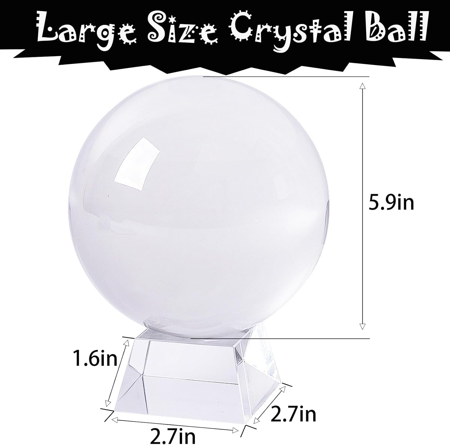 Unlock the mysteries of the universe with this captivating 5.9-inch oversized crystal ball. Crafted with exceptional clarity, this crystal balls for witchcraft invites you to explore the realms of divination, astrology, and spiritual practices. Whether you're a seasoned practitioner or a curious beginner, this crystal balls for witchcraft can serve as a mesmerizing focal point for tarot card readings, fortune-telling, meditation, and more. Halloween crystal ball Resting on a sturdy stand, it creates an enchanting display that adds a touch of mystique to your sacred space or Halloween decor. Large crystal ball embrace the art of lensball photography and capture breathtaking shots that bend light and perspective in captivating ways. Immerse yourself in the world of witchcraft and let this crystal ball halloween guide you on a journey of self-discovery and enlightenment.