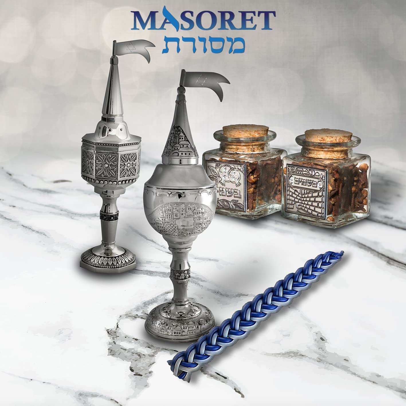 Want a beautiful Jewish Havdalah set?Get the MASORET NICKEL OCTAGON BESAMIN HOLDER! This beautiful set traditionally finalizes Jewish ceremonies.What makes MASORET special? UNIQUE DESIGN – Beautiful glass spice jarPERSONALIZED – Laser-cut plaque with Hebrew wording/artwork on jar TRADITIONAL – For ending holy religious celebrationsCULTURALLY PROMOTED – Made in IsraelGIFT BOXED – Ready for givingSQUARE JAR:CLEAR GLASS METAL PLAQUE POMEGRANATE THEME * Note: No spices included In Jewish tradition, these special braided candles are lit after Biblical holidays such as the Sabbath/Shabbat. The Besamin Jar holds 6 spices of Anis, Cinnamon, Cloves, Hadassim, Hyssop, & Rosemary.CLOSING HAVDALAH BLESSING: "Barukh atah Adonai Eloheinu melekh ha'olam, bo're m'orei ha'esh.”The saying is based on Psalms 19:9 ~ The commandment of the Lord is clear, enlightening the eyes.MASORET is great to use! Sabbath Shabbat Religious Ceremonies Synagogues Host or Hostess Gift House-warming PresentCONTENTS: 1 Jar 2.3”x1.7” 1 Box SATISFACTION GUARANTEE – RISK-FREE! Click ADD TO CART to get your MASORET NICKEL OCTAGON BESAMIN HOLDER. Get in the Spirit of Judaica!