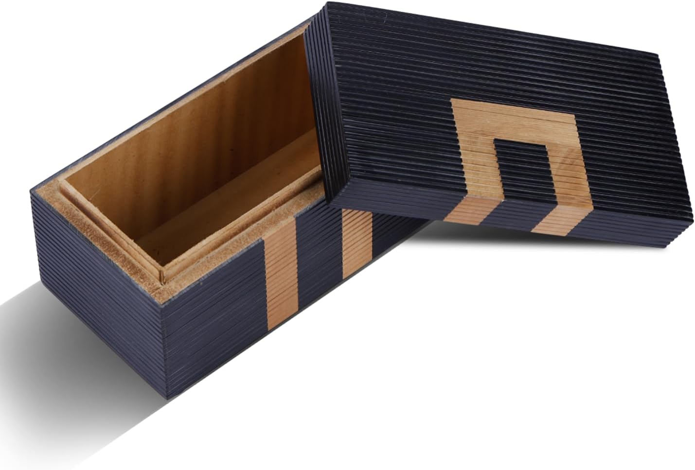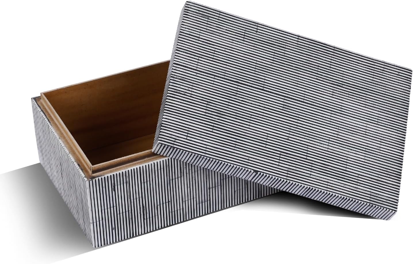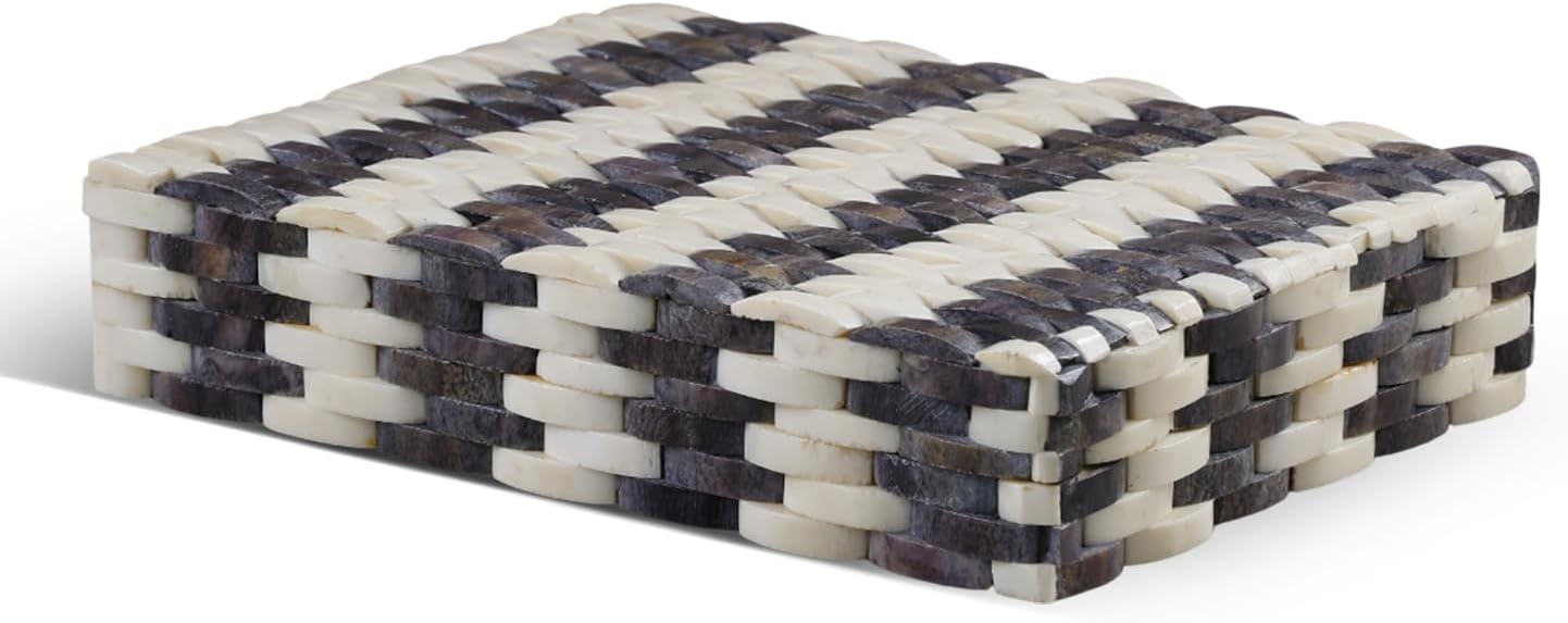 Handicrafts Home Decorative Storage Box - Drancy Ribbed- White Brown Modern Geometric Design – Featuring a sleek, contemporary Drancy Ribbed pattern with clean lines, this handcrafted box adds elegance and style to your coffee table, bookshelf, entryway, or dresser. Multi-Purpose Organizer – Ideal as a jewelry box, memory box, remote holder, trinket box, or photo storage box, keeping your essentials neatly organized while elevating your home decor. Four Convenient Sizes – Available in Large, Medium, Compact, and Small, each box is designed to suit different needs – from storing keepsakes and letters to everyday accessories and small valuables. Decorative Accent Piece – More than just storage, this decorative box with lid doubles as a stylish decor accent for modern, bohemian, vintage, or minimalist interiors. Perfect for coffee table decor or shelf styling. Authentic Artisan Craftsmanship – Designed in the US and handcrafted by skilled Indian artisans, every piece reflects authentic artistry, cultural heritage, and fair-trade values. Product Details: Color/Pattern: Drancy Ribbed - White Brown Material: Bone Inlay, Wood & Pine MDF Outer Sizes: 12x8x5, 10x8x4, 9x6x3.5, 8x4x4 inches Inner Size: 9x7x3.5, 9.2x7x3, 8x5x2.5, 7x3.5x3.5 inches Uses: Jewelry Organizer, Keepsake Box, Memory Box, Remote Storage, Coffee Table & Shelf Decor, Mantle Decor, Entryway Decor