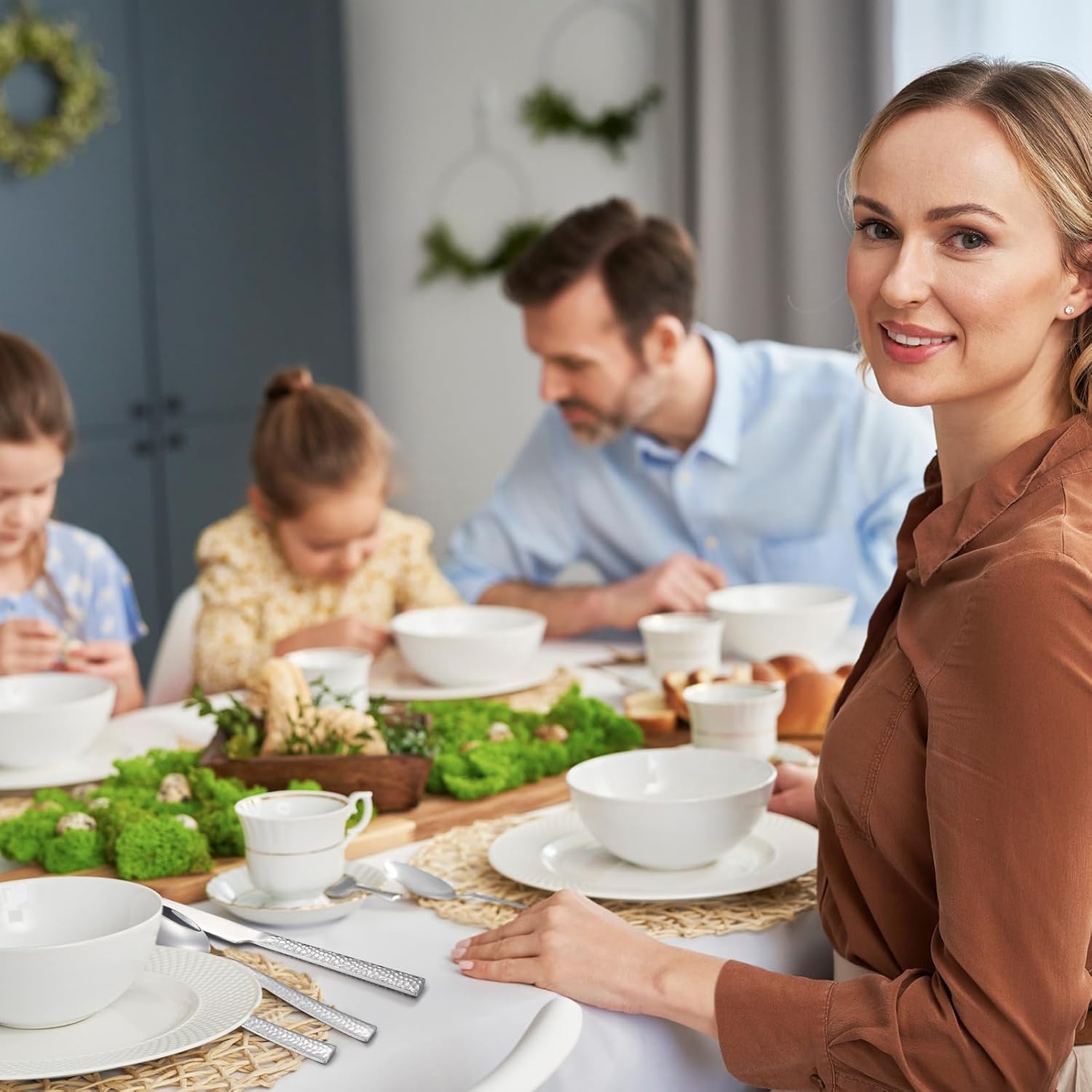 Features: Easy to clean: Dishwasher safe, but we recommend handwashing for longer life. After cleaning, allow to dry thoroughly before storing. Refrain from using wire brushes, abrasive sponges or harsh cleaning materials as they may damage the flatware. Thoughtful gifts: Beautifully packaged and instantly useful, this elegant flatware set makes a standout gift for weddings, housewarmings, anniversaries, or holidays. It combines practicality with refined style. Giving your loved ones a kitchen essential they'll use and appreciate for years to come. Specifications: Material: metal Color: sliver Size: Dinner knives(9.3”, 2.83oz), dinner forks(8.1”, 1.67oz), Dinner spoons(8.1”, 1.94oz), salad forks(7.3”, 1.28oz), And teaspoons(7.1”, 1.4oz) Package includes: 60 x flatware sets Notes: Manual measurement, please allow slight errors on size. The color may exist a slight difference due to different screen displays