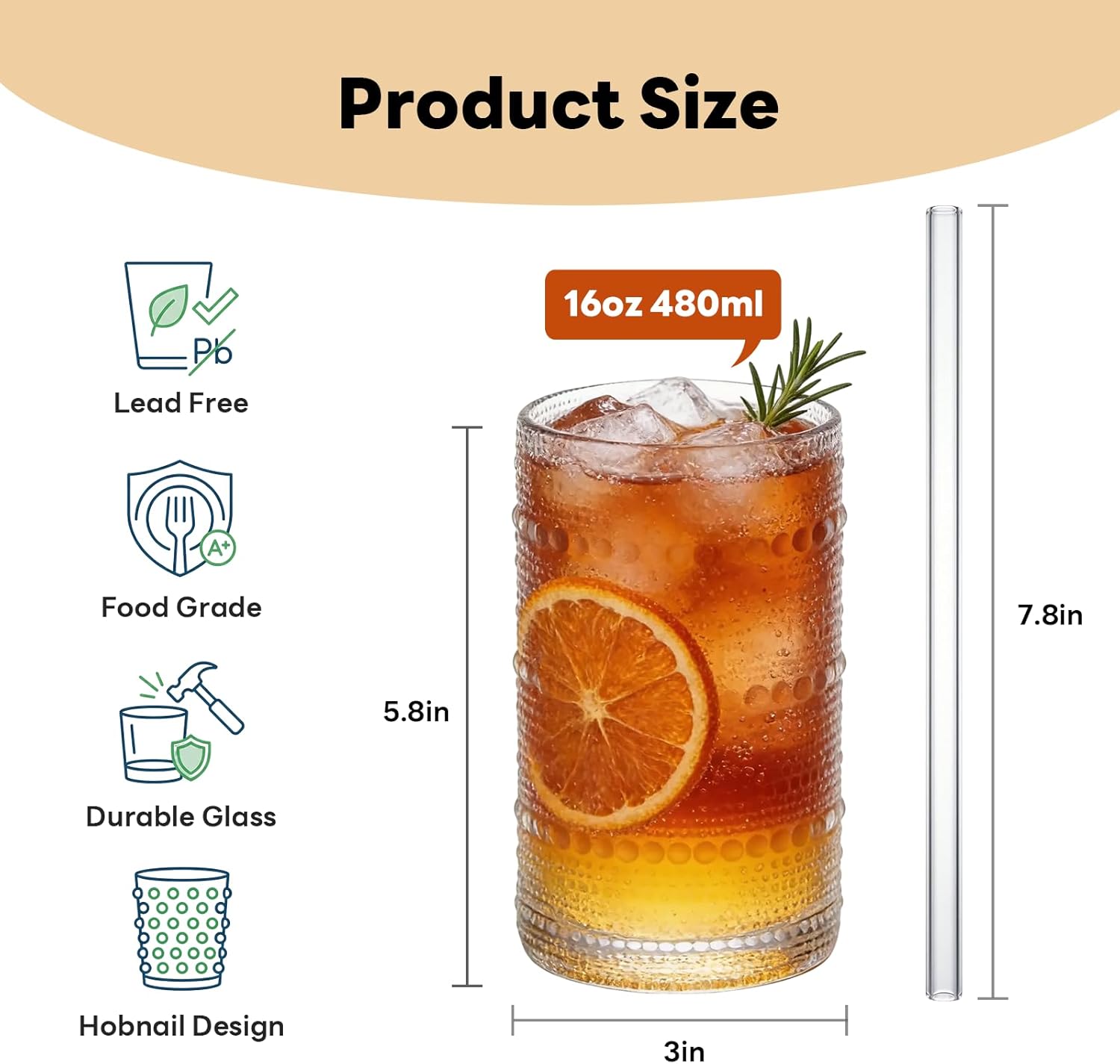 | Included Components | 6 Vintage Hobnail Drinking Glasses |