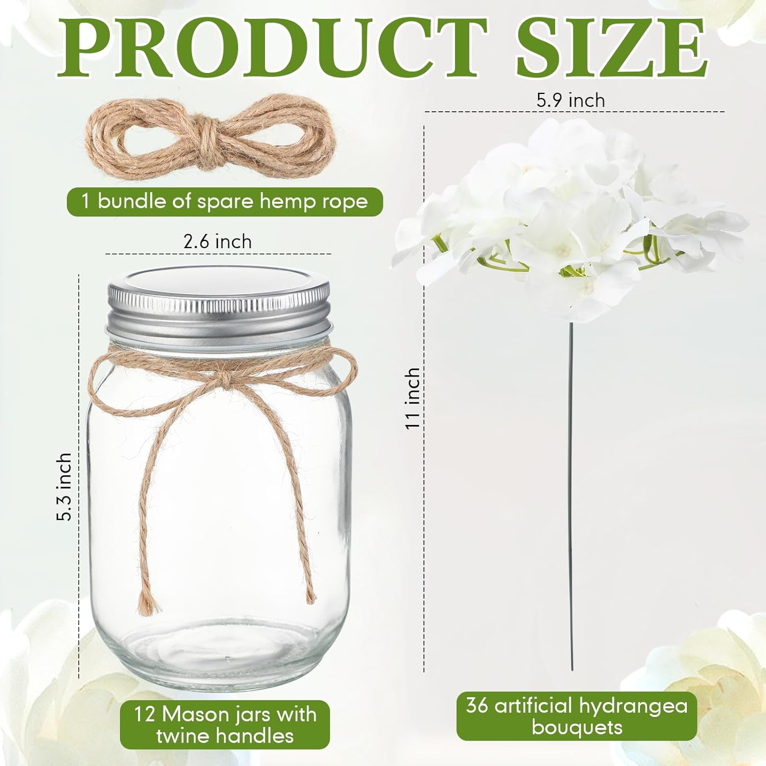 | Included Components | 12 x Mason jar 72 x Flower |