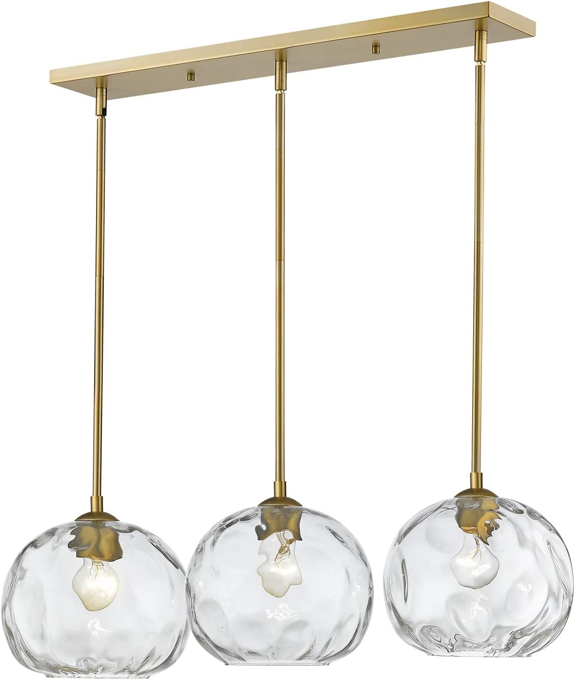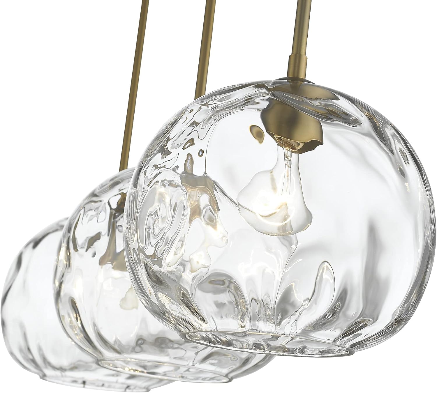 Define your modern space with the eye-catching, streamlined presence of this billiard style three-light pendant. Rounded shades are made from clear, water-textured glass, suspended from a sleek steel frame with a brushed nickel finish. Your contemporary dining room or family space gets an instant boost with this sophisticated fixture.