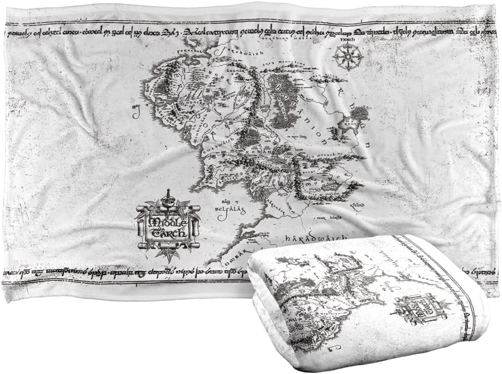 The Lord of the Rings Blanket, 50"x60" White Middle Earth Map Silky Touch Super Soft Throw Blanket