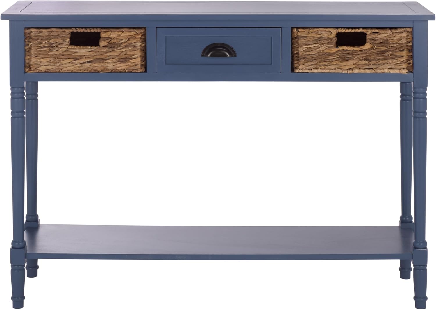 The Christa Storage Console Table brings vintage-inspired warmth and versatile storage to entry halls, living rooms, or family spaces. Finished in a distressed painted surface, its classic silhouette is enhanced by rattan weave drawers that add texture and visual interest. Three drawers keep everyday essentials neatly organized, while the open lower shelf provides ample space for décor, baskets, or books. Crafted from wood with intentional distressing, each console features natural variations in grain, tone, and finish that enhance its authentic character. Designed as both a functional storage piece and a decorative focal point, the Christa Console blends timeless charm with everyday practicality. Assembly is required.