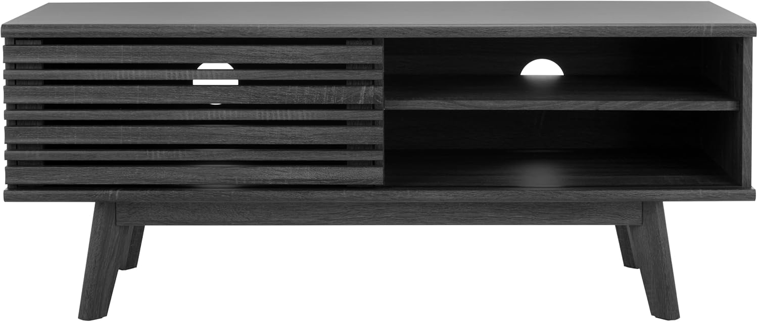 Elevating retro charm for today’s décor, this Aurelio Media Stand overflows with charisma. Aurelio is designed to perfectly accent any living space with its rich walnut finish, two shelves and one door providing ample space for movies, games, or devices. Smart cut-outs in the back hide unsightly wires or cables.