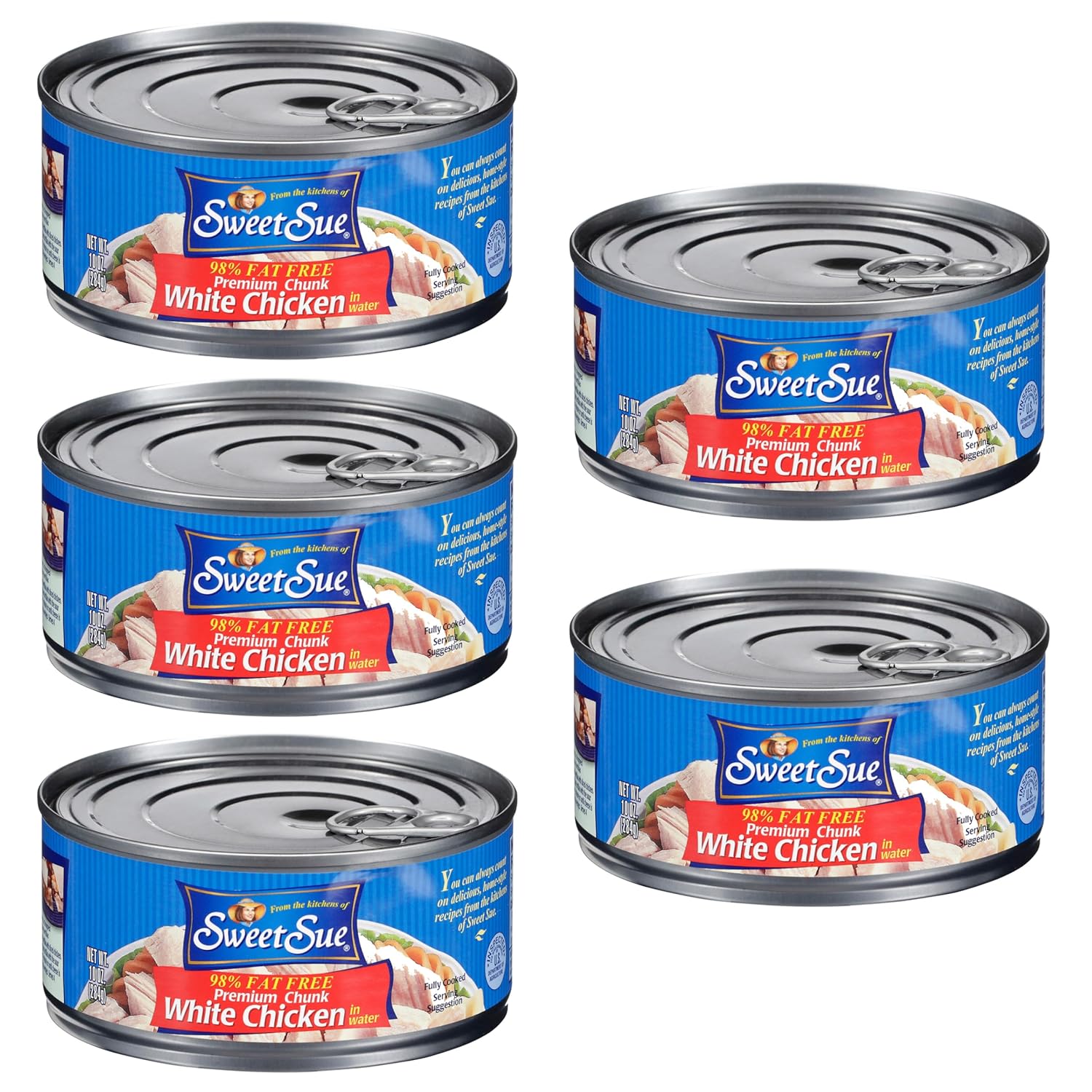 Sweet Sue Canned Chicken in Water is premium, high-quality canned chicken and will satisfy you when you want a tasty and healthy snack, lunch or dinner. Our boneless skinless chicken breast with rib meat is perfect in homemade casseroles, chowders, soups, stews, sauces or any other dish. You can always count on delicious meals from the kitchen of Sweet Sue. Our original recipes bring tasty, home-style goodness to your family table.