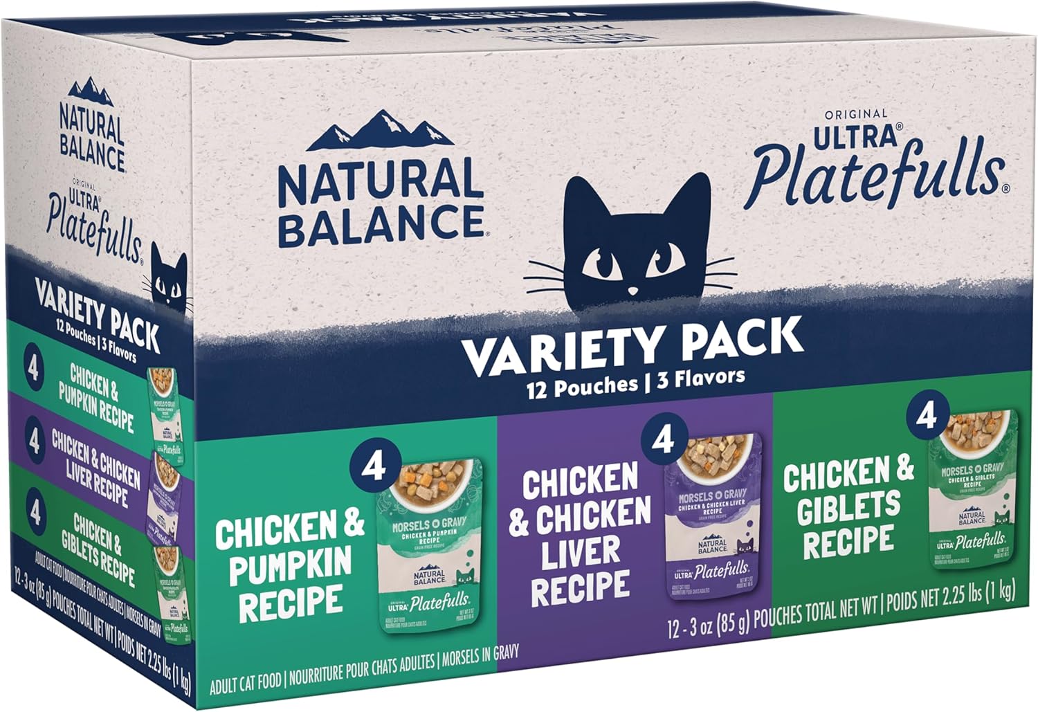 This savory entrée features high-quality chicken and chicken liver mixed with wholesome vegetables and fruit including peas, carrots, cranberries, and more. Scientifically designed to support the needs of adult indoor cats, this grain-free diet is also served in a tasty gravy. Your cat will love to lap up and devour the delicious meal inside our Natural Balance Platefulls Indoor Chicken & Chicken Liver Formula in Gravy Cat Pouch!
