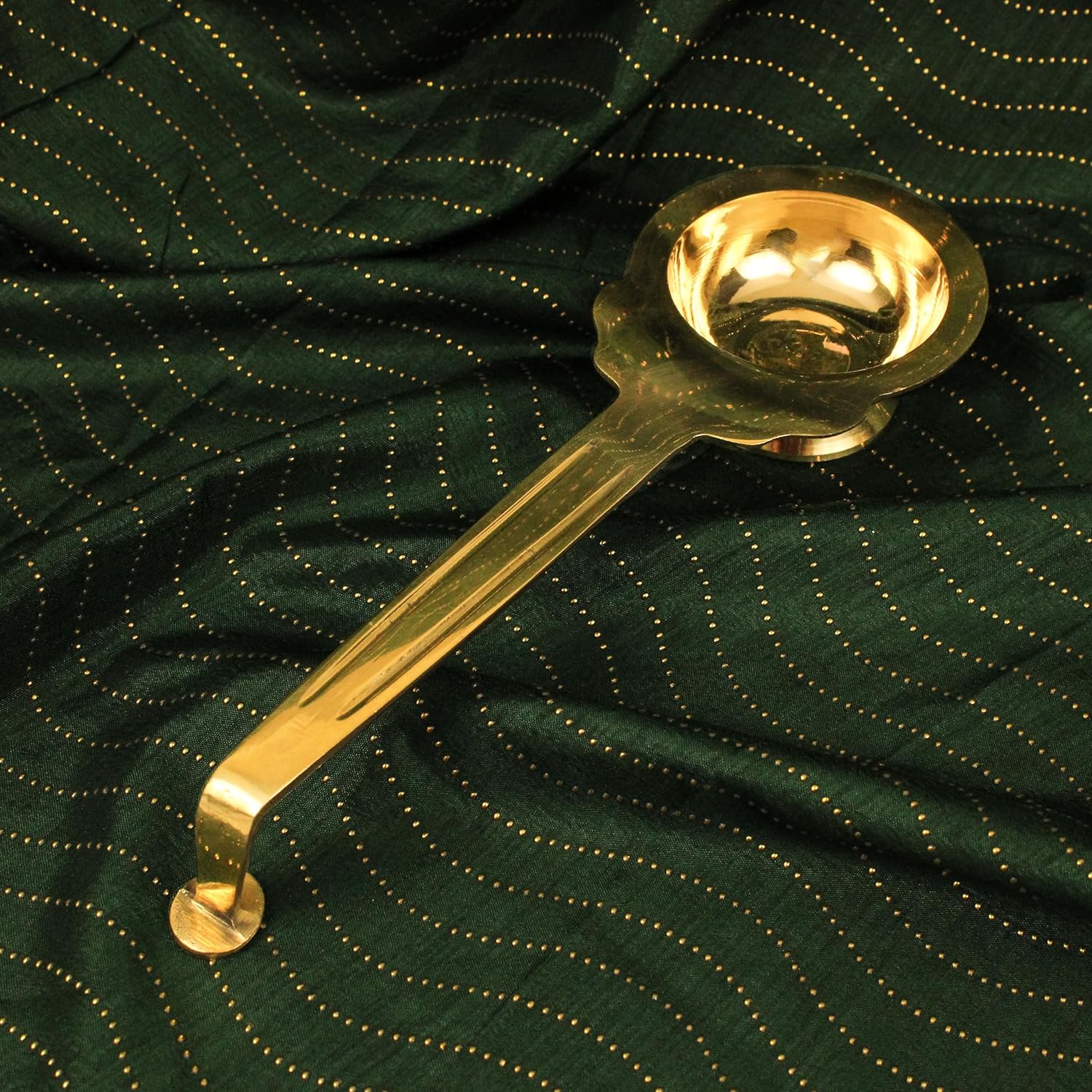 A brass Karpur Aarti|Arti stand is a traditional Hindu ritual item used during worship or puja | Pooja. It is usually made of brass, which is a durable and long-lasting material. The stand is designed to hold camphor Kapoor (karpur), which is lit and used to perform the aarti |Arati ritual. The aarti|Arthi stand typically features a decorative and intricate design that adds a touch of elegance and spirituality to the worship space. The Arati stand may be handcrafted, and its design can vary depending on the region or culture. Some stands may have additional embellishments such as bells, incense holders, or other decorative elements. The brass material not only adds to the aesthetic appeal but also has a functional purpose, as it is heat-resistant and able to withstand the high temperatures produced by the burning camphor. The brass Karpur| Kapoor Aarti stand | Arati Stand is a religious and spiritual item that holds significance in Hindu culture. Its use during worship or puja Pooja is believed to bring blessings and purification to the devotee. The stand may also be used as a decorative item in the home or temple, adding a touch of tradition and spirituality to the space.