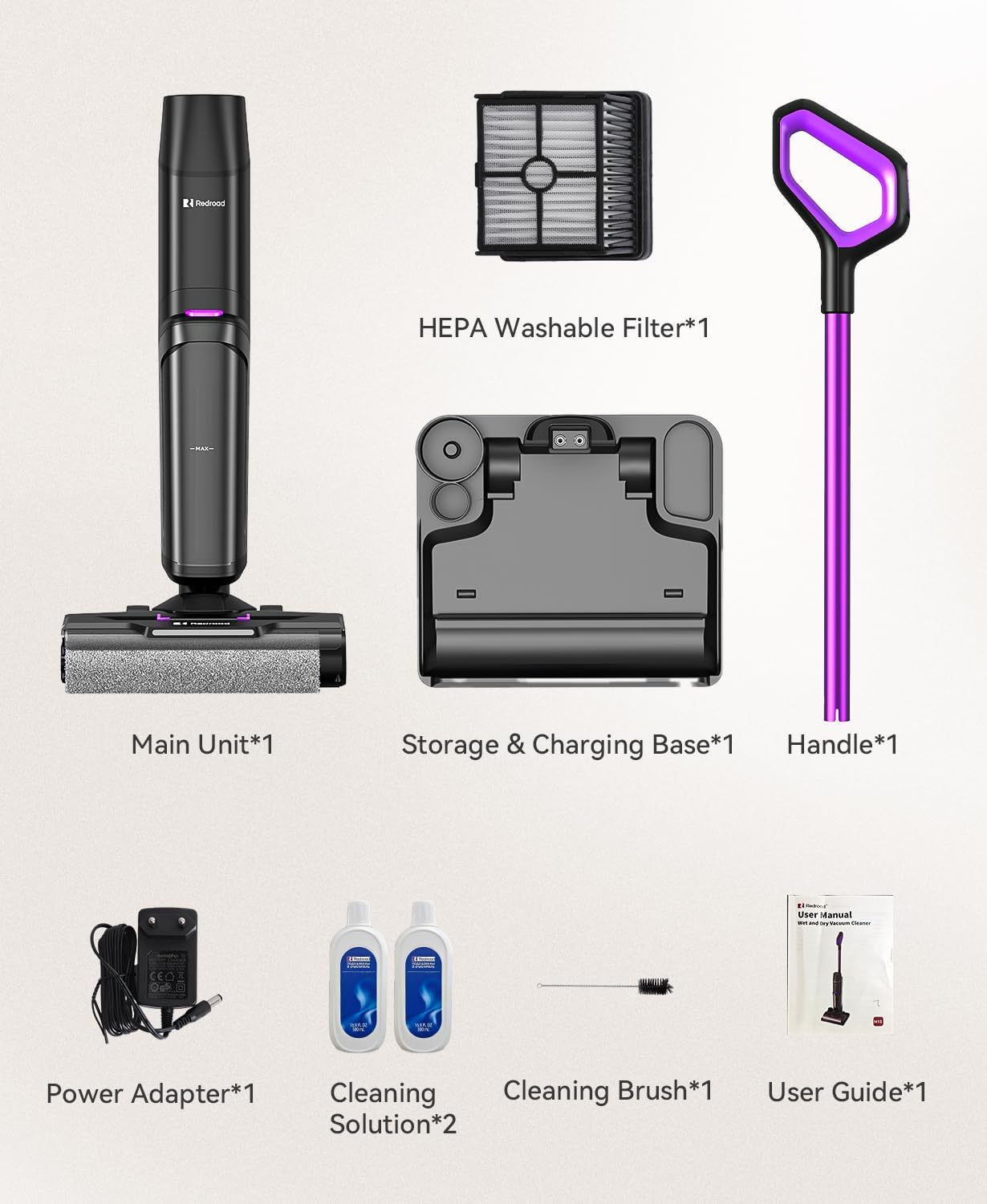 | Included Components | Cleaning Solution×2, Wet Dry Vacuum Cleaner ×1, Charging Base ×1, HEPA filter ×2, roller brush ×2, cleaning brush ×1. Embrace a hassle-free smart cleaning lifestyle |