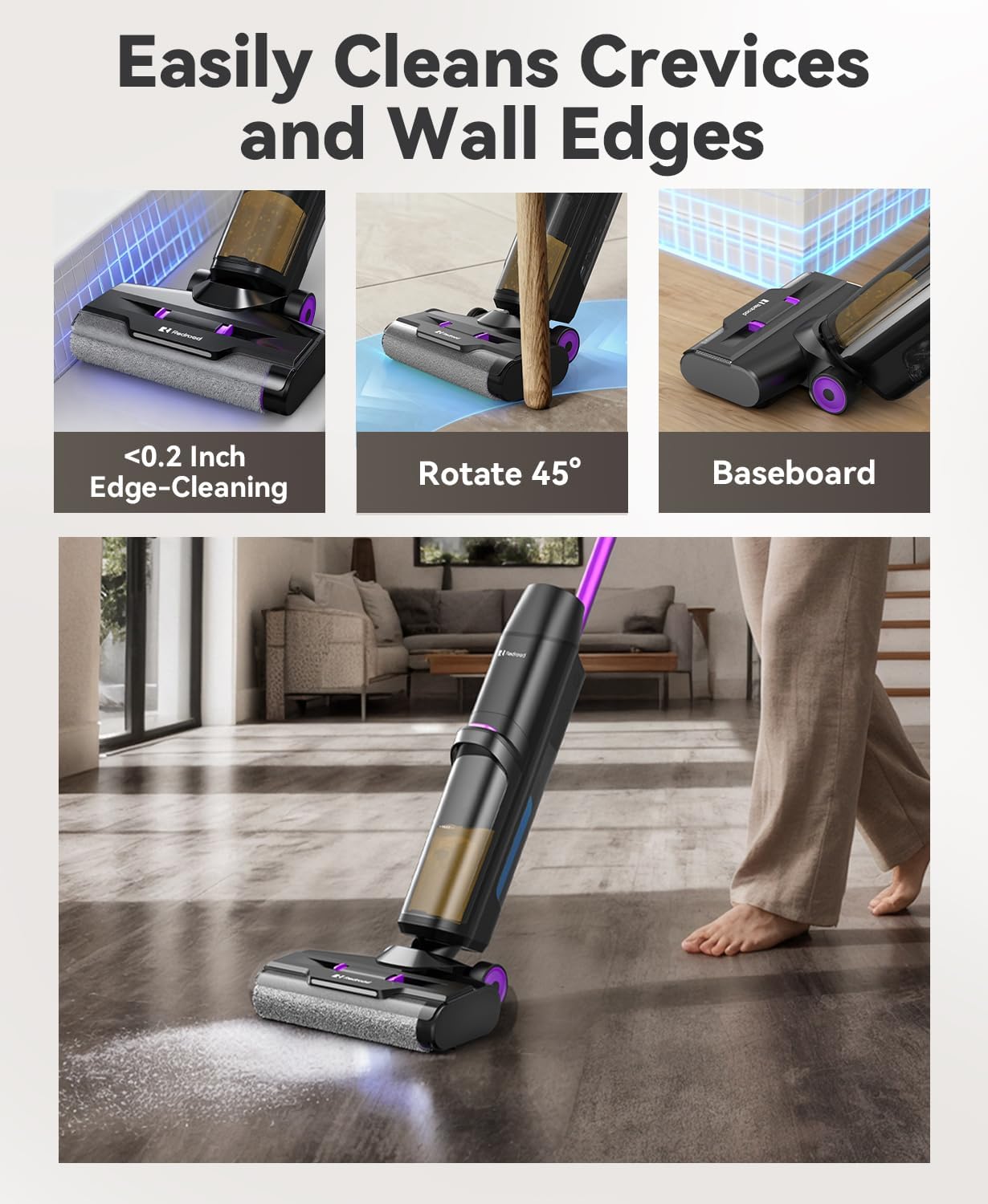 | Other Special Features of the Product | 3-in-1 Wet Dry Vacuum + 0.2-inch Edge-to-Edge Cleaning|No Cleaning Dead Zones, Extended Run Time + Dual Large Water Tanks|Effortlessly Clean Large Spaces, Self-Cleaning + 65dB Quiet Operation | Zero Maintenance Hassle, Self-Propelled Effortless + 4kg Ultra-Lightweight|Clean Without Bending, Voice + LED Dual Guidance|Easily Mastered by Seniors |