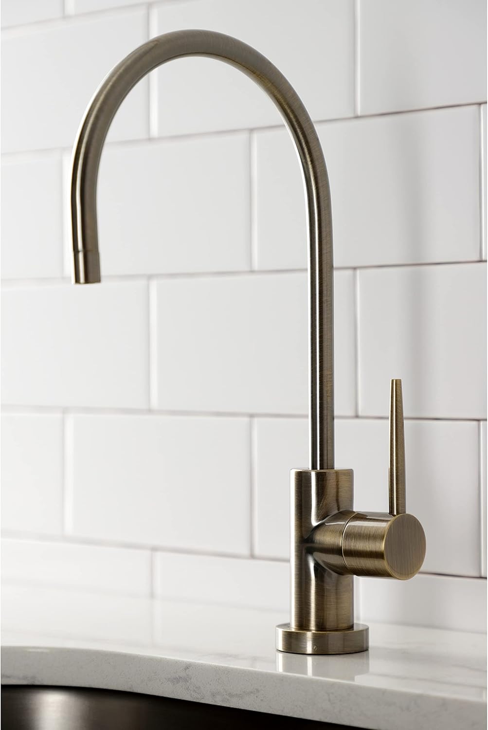 Allow this faucet to provide you with instant, crystal clear drinking water while reducing plastic waste. Ergonomically designed, it will enhance your kitchen's modern theme while adding functionality. Use with an under the counter water filtration system.