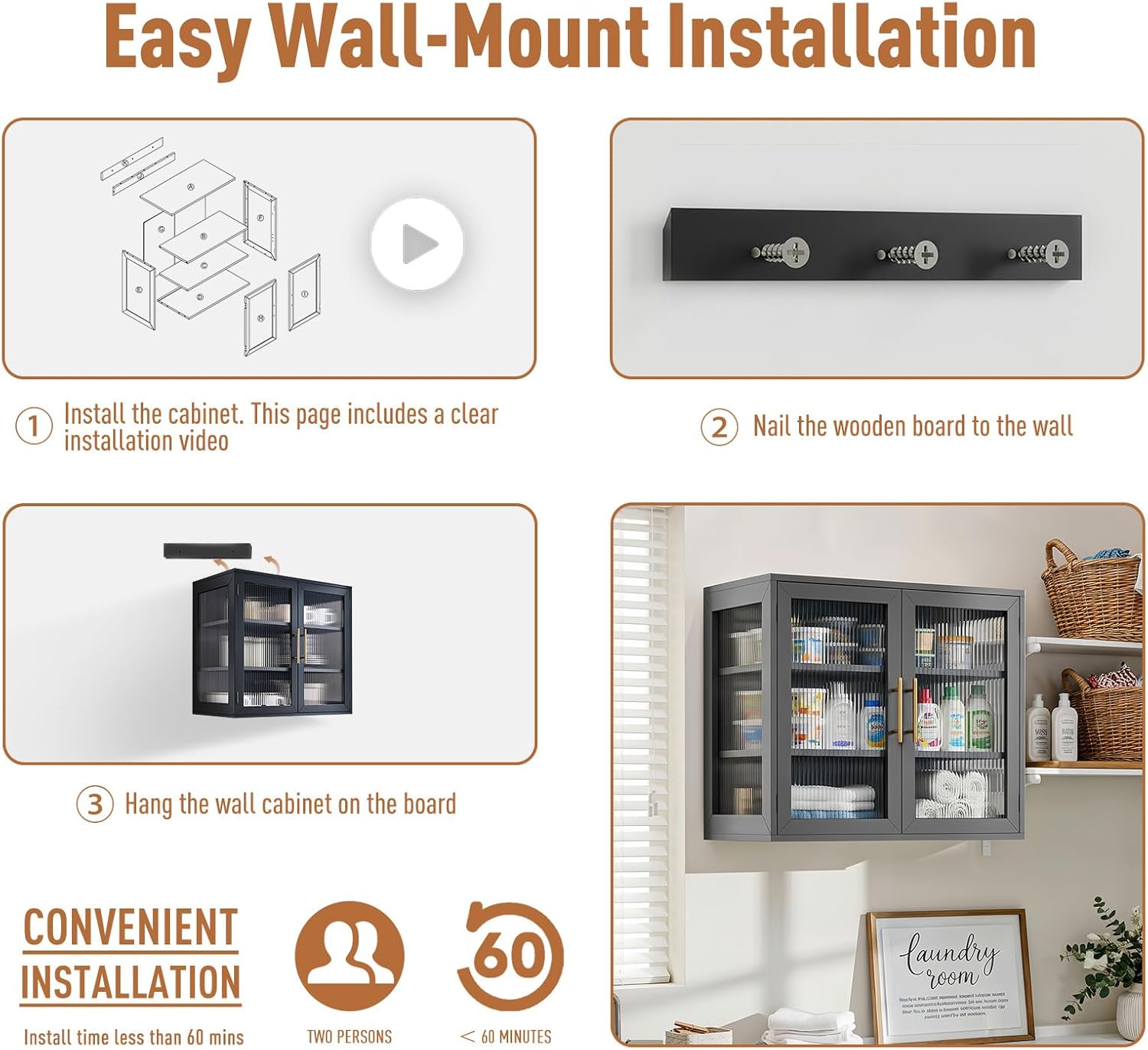 | Assembly Instructions Description | Included hardware and step-by-step instructions for wall-mounted installation |