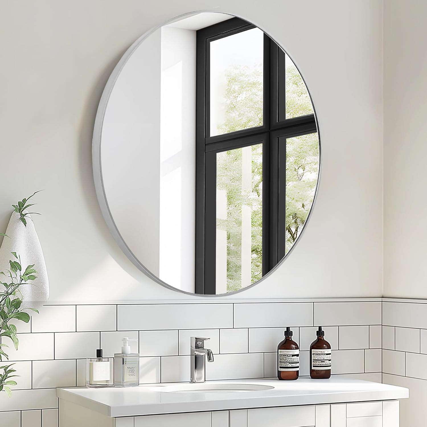 | Set Name | Silver Round Medicine Cabinet with Mirror |