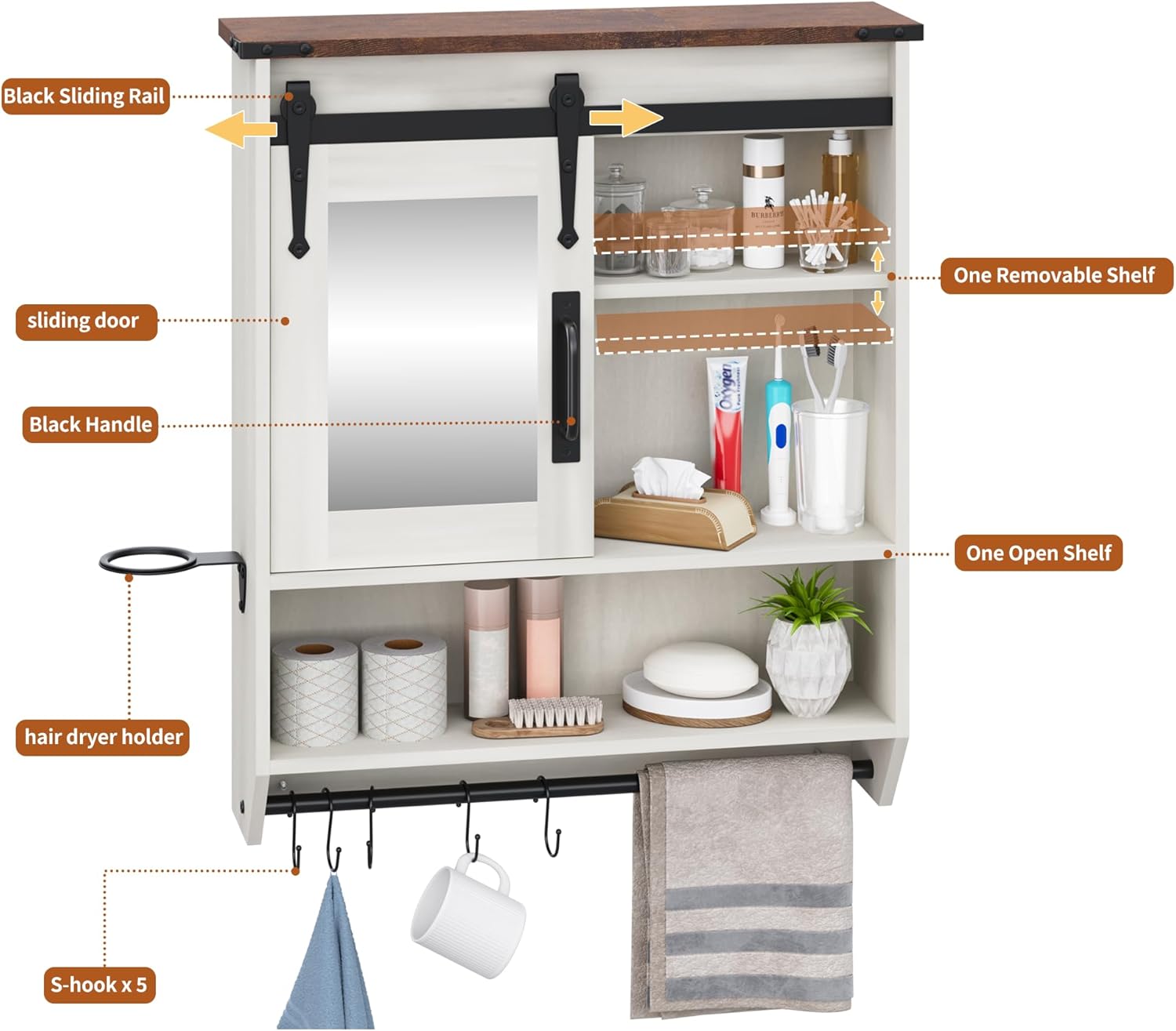 | Included Components | Doors, Mirror, Racks, Shelves |