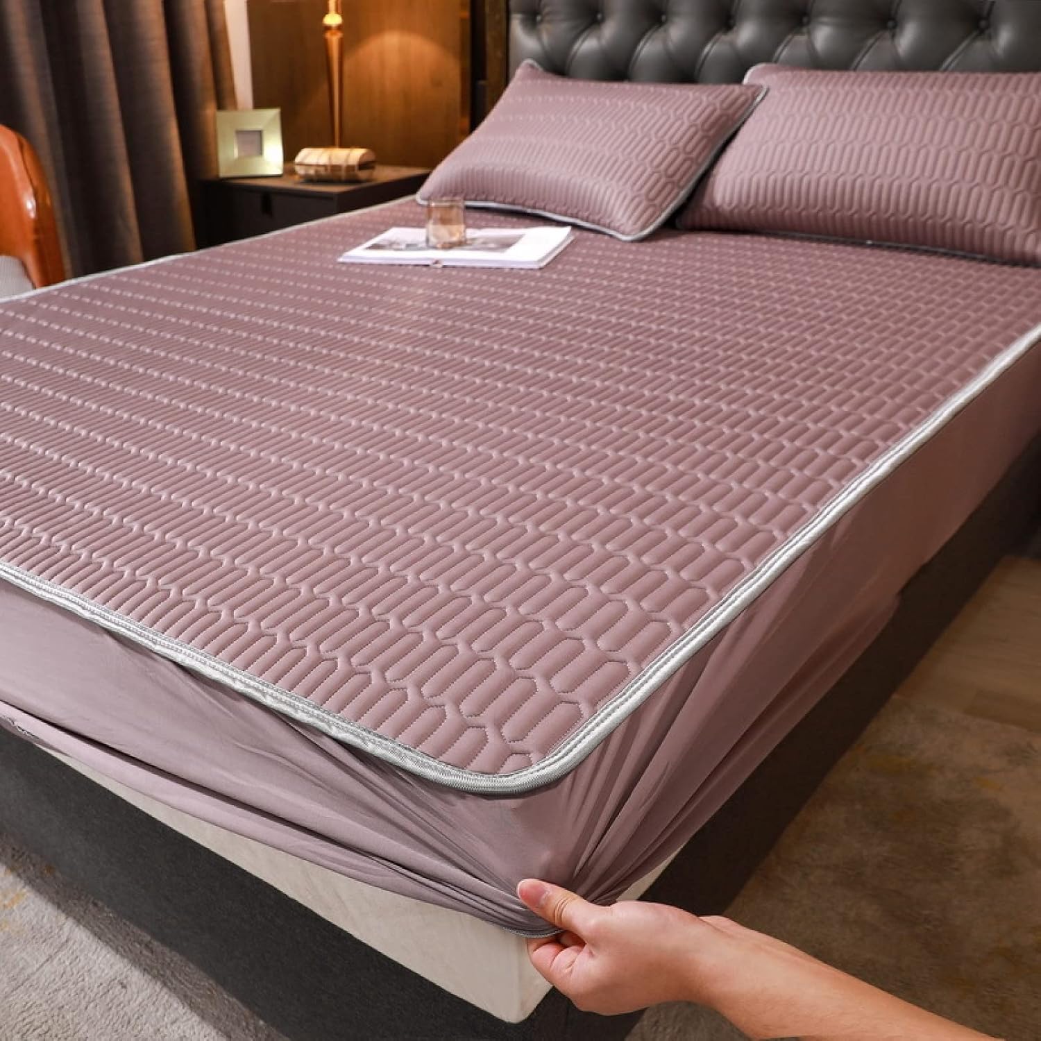 Material: Latex. The fabric is soft, comfortable and breathable, cool but not icy. Suitable for mattresses with an inner depth of 30 cm. (1pcs) means that the package only has 1 fitted sheet and no other accessories. (2pcs) indicates that the package contains fitted sheet*1, pillowcase 48*74cm*1. (3pcs) indicates that the package contains fitted sheet*1, pillowcase 48*74cm*2size:90*200cm (1pcs)120*200cm (1pcs)135*200cm (1pcs)150*200cm (1pcs)180*200cm (1pcs)200*220cm (1pcs)90*200cm (2pcs)120*200cm (2pcs)135*200cm (2pcs)150*200cm (3pcs)180*200cm (3pcs)200*220cm (3pcs)90*200cm=35x79x12inch120*200cm=47x79x12inch135*200cm=53x79x12inch150*200cm=59 x 79x 12inch180*200cm=71 x 79 x 12inch200*220cm=79 x 87 x 12inchOur products are not only keeping up with the pace of tide, but also comfort and durability.A warm home is our bay and solid base.This Fitted Sheet is available in a variety of classic colors to enhance your living space.