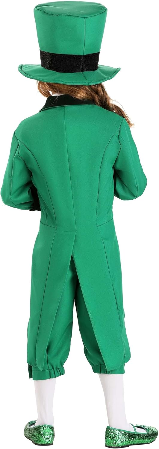 Kids will love the joy of St. Patrick's Day in our Kids Leprechaun Costume. St. Patrick's Day kids costume is crafted from 100% polyester poplin, velvet, and taffeta fabrics, offering your child a comfortable and unforgettable experience. Leprechaun costumes standout features include a poplin cutaway tailcoat jacket, embellished with a velvet collar and cuffs, and decorative gold-tone buttons. Leprechaun outfit design element not only lends an elegant touch to the costume but also boosts its authenticity, making your child feel like a real leprechaun. The vest is included in our Kids Leprechaun Costume, along with knee pants with a zipper and button fly, an elastic back waistband, and buttoned cuffs. Costume features ensure a perfect fit for your child, allowing them to move freely and comfortably during their St. Patrick's Day activities. Completing the leprechaun suit is a foam top hat that maintains its shape, standing 7 inches tall and 20 inches around. Leprechauns would be proud of this hat as it adds the perfect finishing touch to the costume, ensuring your child's costume is as authentic as possible. Our tailcoat is a perfect blend of comfort, authenticity, and fun, made from high-quality materials. The green tailcoat features intricate details that make it stand out, ensuring your child's St. Patrick's Day celebrations are even more memorable. - Jacket - Vest - Pants - Hat