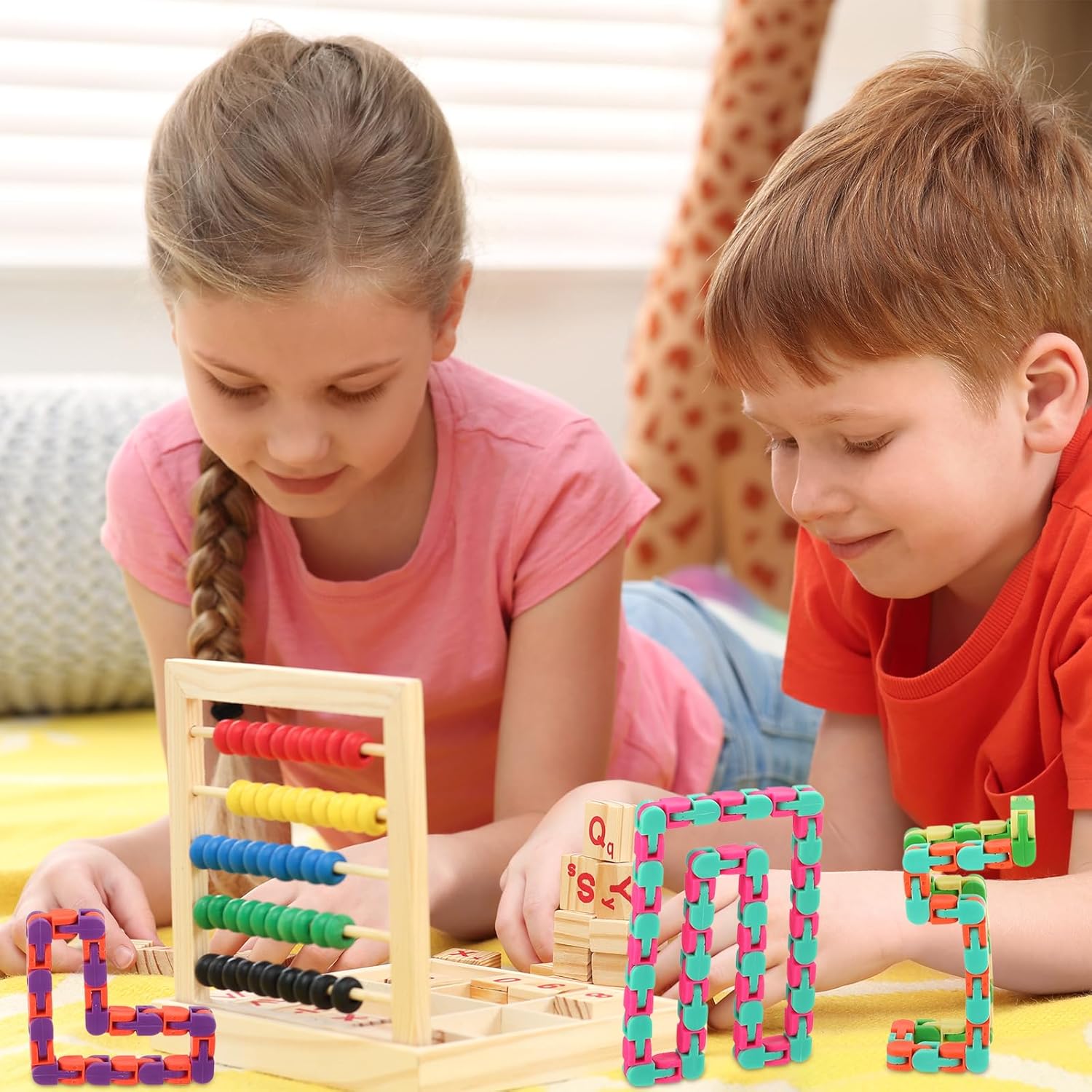 Feature: Widely usages: Wacky tracks are colorful, ideal for basket fillers, stocking fillers, birthday party favors, Christmas gifts, classroom prizes, and more. Proper size: The click fidget snake toy measures approx. 21 inch/ 55 cm long. Designed for people with inattention, stress and anxiety. Specifications: Material: PP Color: as shown in the figure Size: 21 inch/ 55 cm Package include: 60 x Wacky tracks Warm notes: Please allow slight size error due to manual measurement. The colors may exist slight difference due to different screen