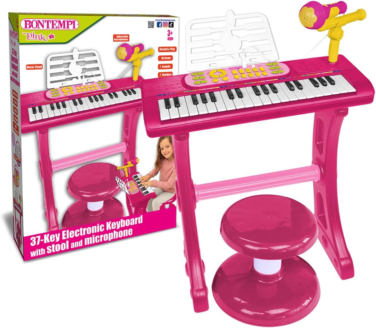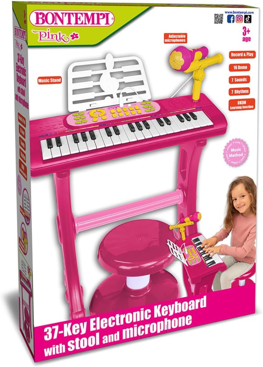 The PlayKeys keyboard is a great introduction to the world of music for young budding musicians. With its 37 keys, it is designed to be accessible and fun for children who want to explore sounds and musical creativity. Equipped with a microphone, children can sing while playing, which encourages vocal expression and improvisation. Our story is woven with threads of innovation and dedication, with the sole purpose of creating unforgettable experiences for children around the world. Bontempi 's incredible journey begins with our commitment to designing toys and musical instruments that not only entertain, but also inspire creativity and cognitive development. Each product is designed to be more than just a toy; it is a window into a world of discovery and learning.