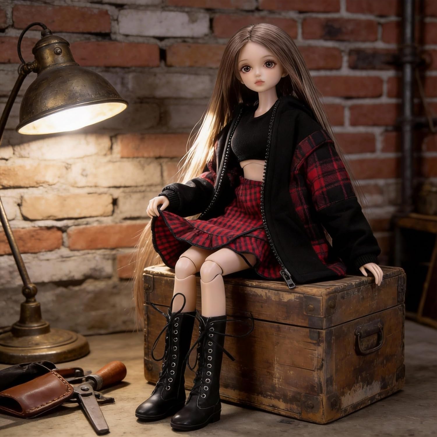 | Included Components | A black and red plaid hooded jacket, A charming red and black plaid ruffled skirt, A pair of stylish black lace - up boots, A sleek black crop top |