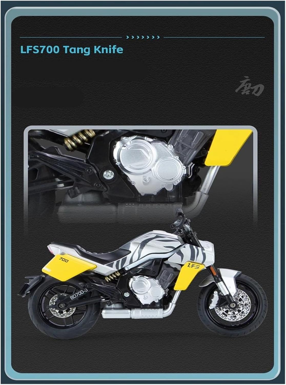 DescriptionNote: Only the fuel tank is made of metal, all others are made of ABS.Name: for Tang Knife Lfs700 Size: about 18.5cmX8.4cmX10cmScale: 1:12 Material: Die-cast metal and ABS partsFunction: ●Front wheel and handlebar can be swung left and right Front wheel and handlebar swivel from side to sideRemovable kickstandSpring rear suspensionFree-rolling wheelsName: simulation miniature alloy motorcycle model toys, sports racing motorcycle model super off-road cruiser motorcycle vintage iron motorcycle model limited edition static commemorative collection motorcycle model seriesMaterial: alloy + rubber tires + ABS1:Exquisite workmanship2: sturdy and durable3: also far motorcycle of the true proportion of the detailsFunctions: front and rear wheels with shock absorbers/head linkage left and right steering/size kickstand can be put away and put down/press to start the lightsUsage: Parent-child interaction Home office decoration Collection Memorial Christmas Birthday Halloween Thanksgiving Any holiday giftRecommended age:4-6 7-12 18 years old and aboveTips for use:1. Keep away from fire sourceTranslated with DeepL.com (free version)