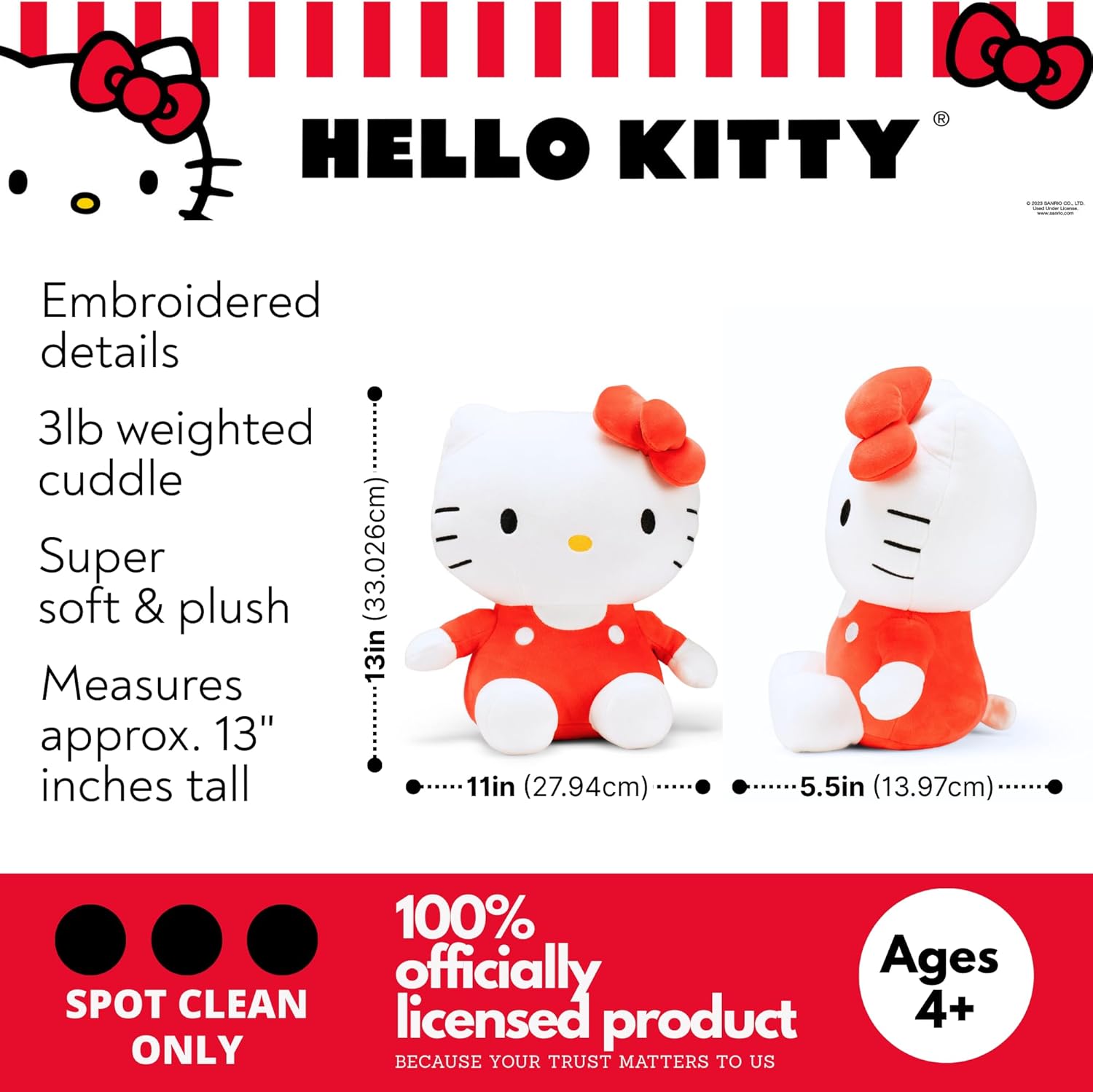 Snuggle up with the Hello Kitty Weighted Cuddle Pillow, an officially licensed plush inspired by Sanrio’s global icon. This charming companion offers a gentle, weighted presence, making it the perfect soothing addition for fans of all ages. Crafted from ultra-soft plush fabric, this pillow captures Hello Kitty’s timeless look with her signature red bow, embroidered details, and sweet expression. The evenly distributed weight provides a comforting, grounded feel, whether you’re relaxing on a white boucle couch, decorating a sophisticated bedroom, or looking for an extra-cozy lounging partner. This Hello Kitty Weighted Cuddle Pillow is designed for easy care—simply spot clean as needed to keep her looking bright and fresh. Made with high-quality, durable materials, she is built for endless hugs and long-lasting enjoyment. A must-have for any Sanrio collector, this weighted plush brings a touch of classic kawaii charm to your home. Whether it’s a gift for a special occasion or a treat for yourself, this cuddle pillow is sure to deliver smiles and sophisticated comfort to any space!