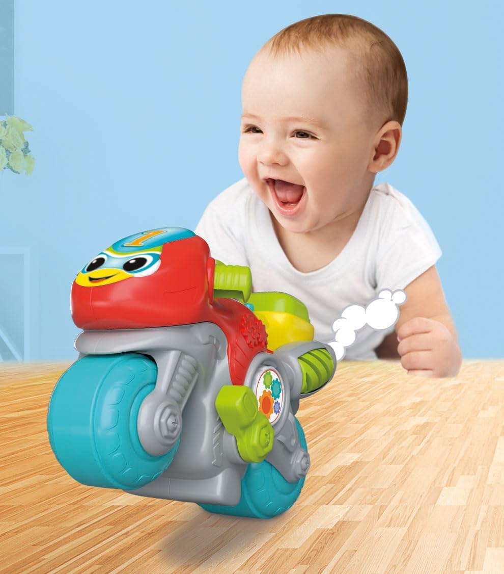 A colorful bike that is also a fun electronic activity center. Help the child learn letters and numbers thanks to the interactive buttons: the chest can be pressed and the key rotates. It stimulates manual skills, visual and auditory perception, facilitates the development and understanding of the cause-effect relationship. Mechanical and interactive elements help optimize fine motor skills and hand-eye coordination. Educational content is available in Spanish and English.