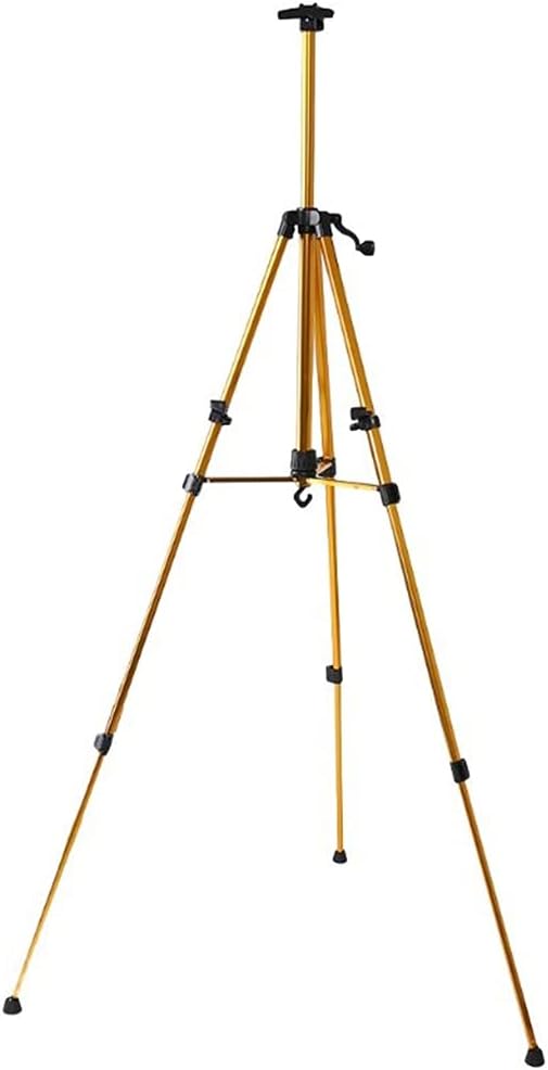 Premium Quality: Made of aluminum alloy, lightweight and fold-able. Tightly hold your artwork in place.Extendable Height: The easels' height can be adjusted from 20" to 60" to fit most . Used for standing on the floor or table-top use.Sturdy Art Easel: Each leg can be adjusted individually to provide an even surface. Non-slip base make it more stable and spares you from miss caused by the uneven surface.Multiple-purpose: Suits for posters board, chalkboard, whiteboard and dry erase marker board.Easy to carry: Comes with a carrying bagg,Aluminum Easel only, other accessories demo in the picture is not included.Specification:Material: Aluminium AlloyHeight: app.51-153cm/20.08-60.24inHighest panel size: 74cm/29.13Main Color: GoldQuantity: 1 SetNote:No retail package.Please allow 0-1cm error due to manual measurement. pls make sure you do not mind before you bid.Due to the difference between different monitors, the picture may not reflect the actual color of the item. Thank you!Package includes:1 x Aluminum Easel1 x Carry BagWidely Applicable: the table easel can be widely applied in many places, not only to display smuctions.all paintings, mini canvases, artwork in art galleries, but also as photo stands, framed photographs, postcard stands at parties, gatherings, weddings, as well as for displays and signs in offices, bedroom, living room