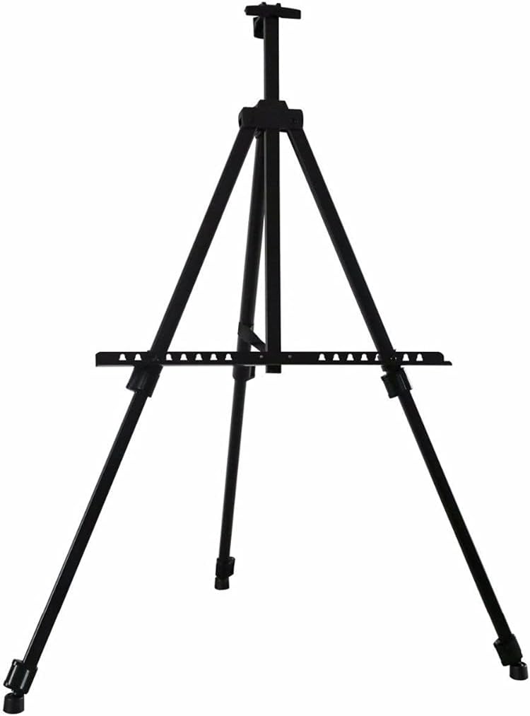 Made with aluminum alloy, strong and .Accommodate panels or canvases up to 33 inch high .Tripod design makes the easel more stable .Adjustable legs allow quick height and angle adjustments .Suitable for all situation wherever you need.Specifications: Color: black Item Weight: 34 ounces,965g Foldable Size: 21.3 ,54cm Package includes: 1x Easel 1 x Black Horizontal BarIt can be used as a desk/table Easel, display stand for painting work and advertisement.