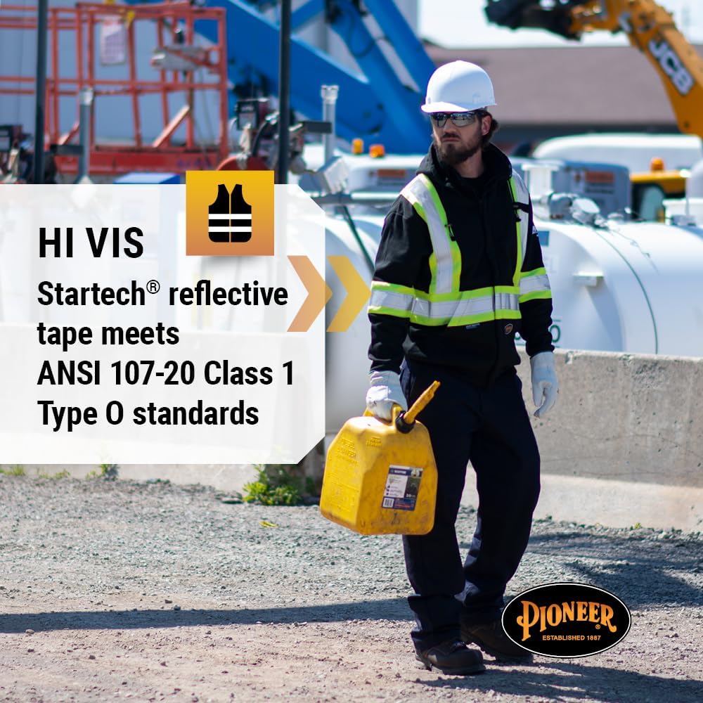 Heavyweight safety hoodies deliver unsurpassed comfort and maximum protection from cold weather and work environments where potential flash fire and arc flash hazards exist. This hoodie is made with 100% fire resistant treated preshrunk cotton - 12 oz. For thermal protection, the hoodie features a thermal protective value (TPP) with the spacer: 12/contact test: 10.5. ATPV 23 cal/cm2 (Arc Thermal Protective Value) and falls in the ARC 2 rating category. Its material and components meet CGSB 155.20, 2000 requirement. It also features 2 front slash pockets and a detachable snap hood. Sewn with inherently fire resistant thread, this hoodie also includes a fire resistant, brass, non-locking zipper. This unisex flame resistant hoodie comes in a wide range of sizes from Small to 2XL and is available in Orange and Black colors. Since 1887, Pioneer has grown a reputation for designing and building the highest-quality and most innovative protective and safety apparel. Using only the best and safest materials, componentry, and advanced sewing methods, Pioneer continues to deliver on safety, durability, comfort and value for the professional worker. Pioneer offers a complete selection of safety clothing including Hi-Viz gear, flame-resistant wear, rainwear and much more. All our products are independently tested to meet and exceed all stated safety standards.