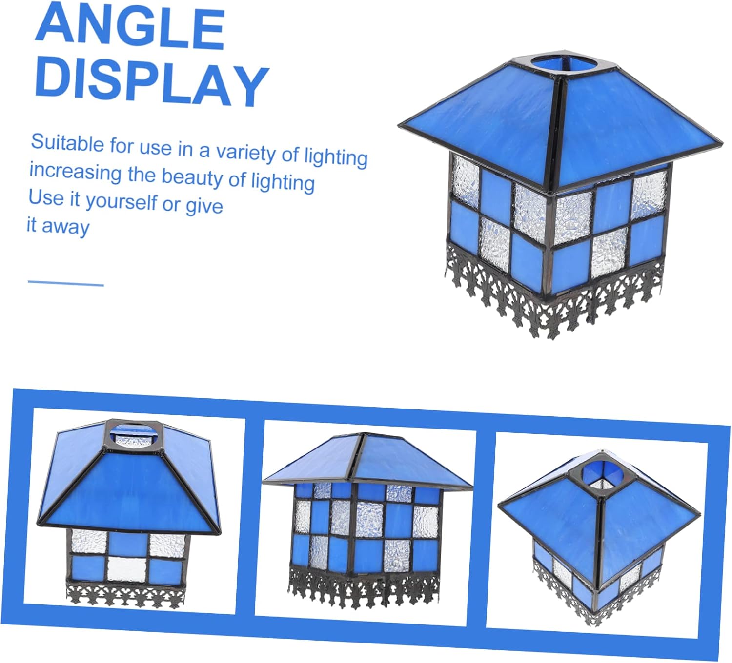 Package List 1 x lamp cover Features -Color: Blue Lamp Accessory. -Material: Glass Wall Lamp Cover. -Size: About 15.00X15.00X15.50cm/5.89X5.89X6.09inch Ceiling Lamp Lampshade. -Note: top hole size is about 4.2cm; suitable for E27 lamp holder Lamp Shade - This product is not only can be used as a lamp shade, also can be used as a lamp decor Light Shade. - Simple but decorative, suitable for living room, study, bedroom, room, etc Lamp Cover. - The fine structure can protect your lamp , very useful and Glass Light Cover. - The lampshade is made of for the and use Simple Lampshade. - The product is exquisitely crafted, and the shape is simple and generous Glass Lamp Cover.Goods InformationLamp Accessory This item is artistic lamp shade, made of material for and to use.Chandelier Lamp Cover It can be used to decorate your wall lamp, ceiling lamp, and more.Ceiling Lamp Lampshade With simple and generous appearance design, it is suitable for living room, bedroom, study, etc