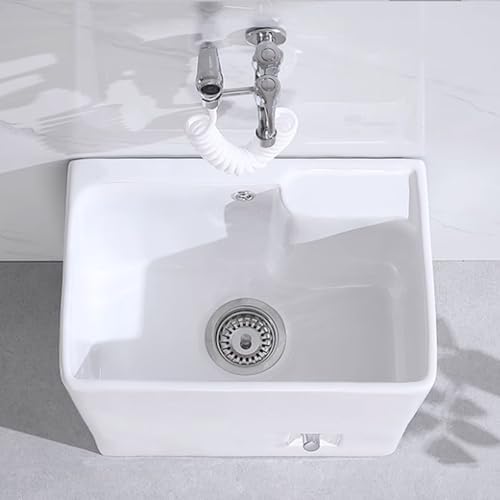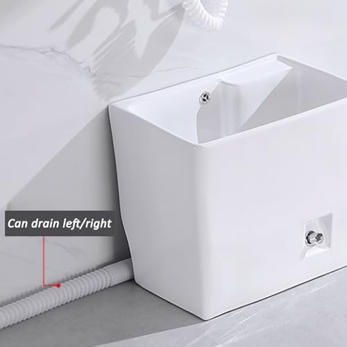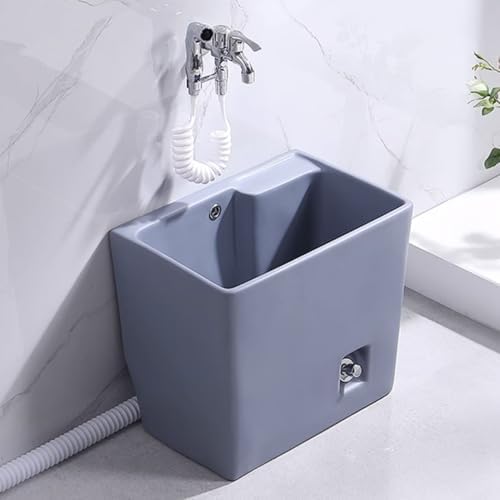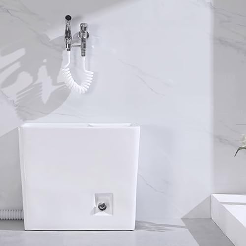 Simplify your cleaning routine with our versatile ceramic foot-drain mop sink, designed for homes, businesses, balconies, and bathrooms. This innovative product features a foot-operated mechanism that allows you to easily empty wastewater without getting your hands dirty, prioritizing your hygiene and safety. Crafted from durable, thick ceramic, our mop sink resists scratches and stains, ensuring it retains its sleek appearance even with frequent use. The spacious design accommodates various mop sizes, while the non-porous surface allows for quick and easy cleaning, making it a practical choice for both residential and commercial environments. Ideal for tight spaces, the Mop Service Basin is perfect for daily tasks or heavy-duty cleaning in hotels, apartments, and kitchens. Its sturdy construction guarantees longevity, making it a valuable addition to your cleaning arsenal. Available in multiple colors including Black, Gray, Green, and White, our Freestanding Utility Sink with Drain and Faucet seamlessly blends with any decor. Please note that due to monitor differences and lighting conditions, actual product colors may vary slightly. Additionally, as each sink is handcrafted, there may be a small variation of 1-2 cm in dimensions. Upgrade your cleaning experience with our ceramic mop sink, where functionality meets style—perfect for maintaining a pristine environment effortlessly.