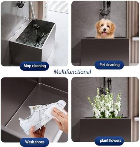 Introducing our versatile Kitchen Sink with Mop Holder and Faucet, an essential addition to any home or commercial space. This floor-mounted sink is designed with a vintage ceramic utility style, seamlessly blending functionality with aesthetic appeal. Perfectly suited for balconies, dining rooms, patios, and outdoor areas, it enhances your space while providing practical solutions for everyday tasks. Crafted from durable stainless steel, this mop sink ensures longevity and resistance to wear, making it ideal for high-traffic environments like laundry rooms, garages, and commercial settings. The included faucet and anti-blocking feature enhance usability, allowing for efficient cleaning and maintenance. Imagine hosting gatherings on your patio or effortlessly managing laundry tasks in your garage with the convenience of this sink. Its thoughtful design includes a drain pan to keep your area tidy and minimize mess, making it a practical choice for any homeowner or business. Before making your purchase, please confirm the size and color to ensure it fits your needs perfectly. Keep in mind that slight variations may occur due to different monitor settings, and some manual measurement errors are possible. We appreciate your understanding and encourage you to refer to the actual product for accuracy. Upgrade your cleaning routine and elevate your space with our Mop Sink, a reliable and stylish solution for all your utility needs. Whether for personal use or commercial purposes, this sink is designed to meet your expectations and provide lasting value.