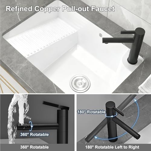 Elevate your bathroom experience with our undermount bathroom sink featuring a functional washboard design. This innovative sink is not just a place for washing; it's a versatile assistant for your laundry needs, making it perfect for both everyday use and special occasions. Crafted from high-temperature ceramic, our sink is built to last, ensuring it won't fade or yellow over time, maintaining its pristine appearance. The refined brass pull-out faucet is a standout feature, rotating approximately 180 degrees for effortless 360-degree adjustment of the water flow direction. This flexibility enhances your washing experience, whether you're rinsing delicate items or filling larger containers. The wide and deep basin is designed to minimize water splashing, keeping your countertops and floors dry and tidy. Safety and functionality are prioritized with an integrated overflow hole, effectively preventing any risk of water spillage. Additionally, the stainless steel filter basket and drain assembly ensure smooth drainage while preventing sewer blockages, allowing for a hassle-free maintenance experience. Our sink's simple and elegant design seamlessly complements various bathroom styles, making it an ideal choice for any home. Installation is a breeze with the included complete installation accessories, and cleaning is quick and easy, allowing you to enjoy your bathroom space without worry. Product Specifications: - Material: Ceramic sink with refined copper faucet - Sink Color: White - Faucet Color: Black - Shape: Rectangular - Overflow Hole: Yes - Drain Hole: Yes - Faucet Hole: Yes - Installation: Undermount - Overall Dimensions: Available in 23.6x18.9x9 in, 27.8x18.9x9 in, and 31.5x18.9x9.5 in - Faucet Height: 7.9 in Package Contents: - Ceramic washing sink with scrubbing board × 1 - Refined copper faucet × 1 - Hot and cold hoses - Drainer + drain pipe - Metal fittings Transform your bathroom into a functional and stylish space with our undermount bathroom s...