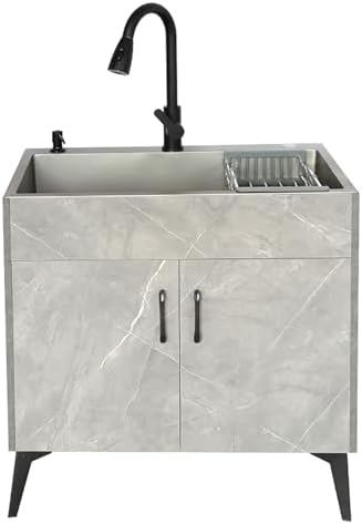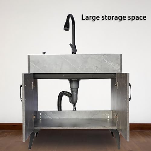 Introducing our versatile Kitchen Sink with Cabinet, perfect for both indoor and outdoor use. Crafted from high-quality 304 stainless steel, this sink is designed to withstand the rigors of daily use while maintaining its sleek appearance. The integrated hydraulic sink features rounded corners and edges, ensuring easy cleaning and a modern aesthetic. Our practical sink is paired with a bamboo fragrant board cabinet, providing ample storage for your kitchen supplies. This not only keeps your space organized but also enhances your kitchen's overall look, making it cleaner and more inviting. Whether you're preparing meals in a busy restaurant or enjoying outdoor gatherings, this sink is the ideal solution for any setting. The included pull-out faucet rotates 360 degrees, allowing for effortless maneuverability and convenience during washing. With its robust construction and thoughtful design, this sink can handle various tasks, from rinsing fruits and vegetables to washing dishes and cleaning tools. Perfect for use in kitchens, bars, restaurants, outdoor gardens, clean rooms, canteens, and garages, this sink cabinet is a great addition to any commercial or residential environment. Before purchasing, please measure your available space to ensure a proper fit. Minor measurement errors of 1-3 cm are normal due to manual measuring. If you encounter any issues during shipping, such as damage or deformation, please reach out to us for a satisfactory resolution. Elevate your cleaning experience with our Kitchen Sink with Cabinet, where functionality meets style in every setting!