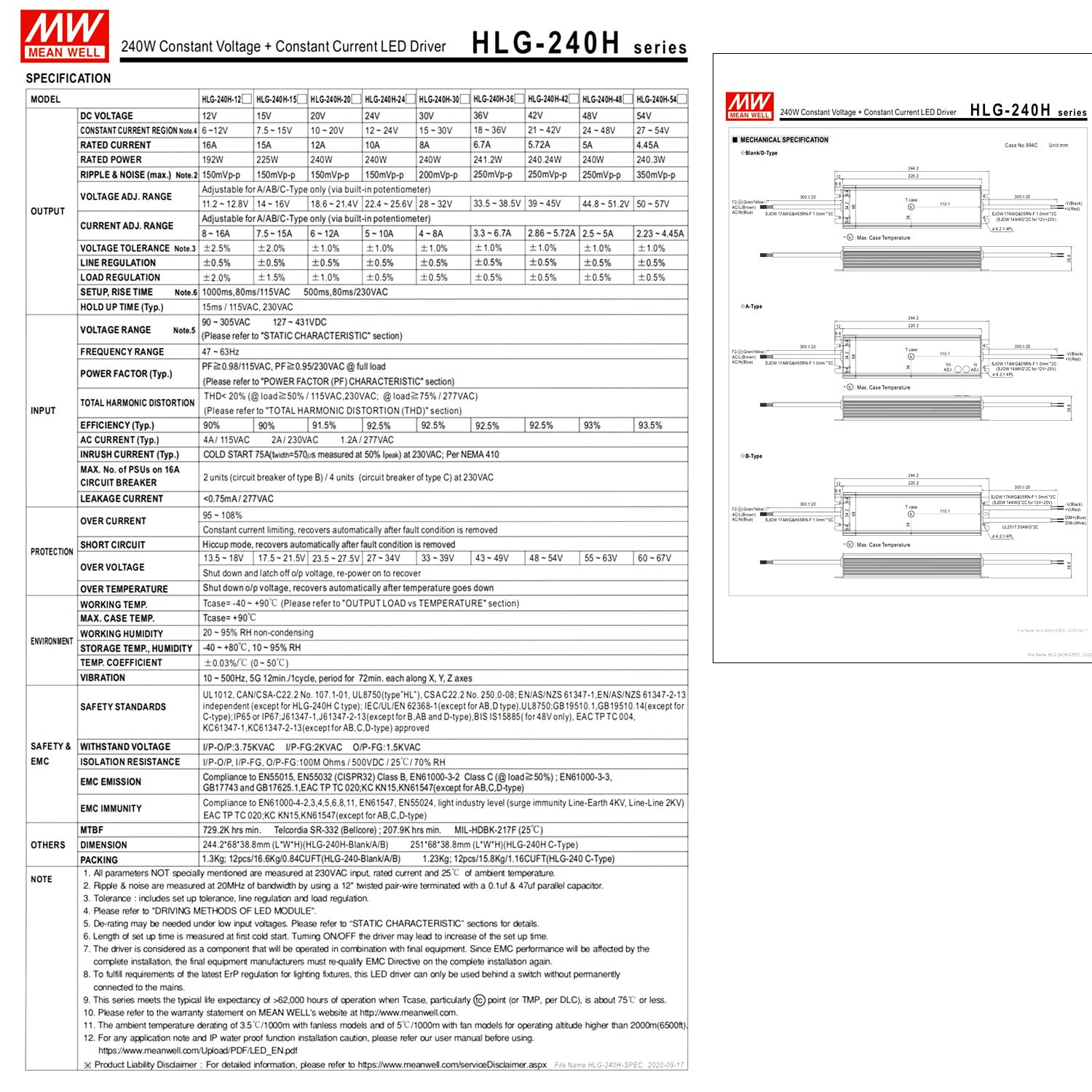 | Model | MW(HLG-240H-42A) |