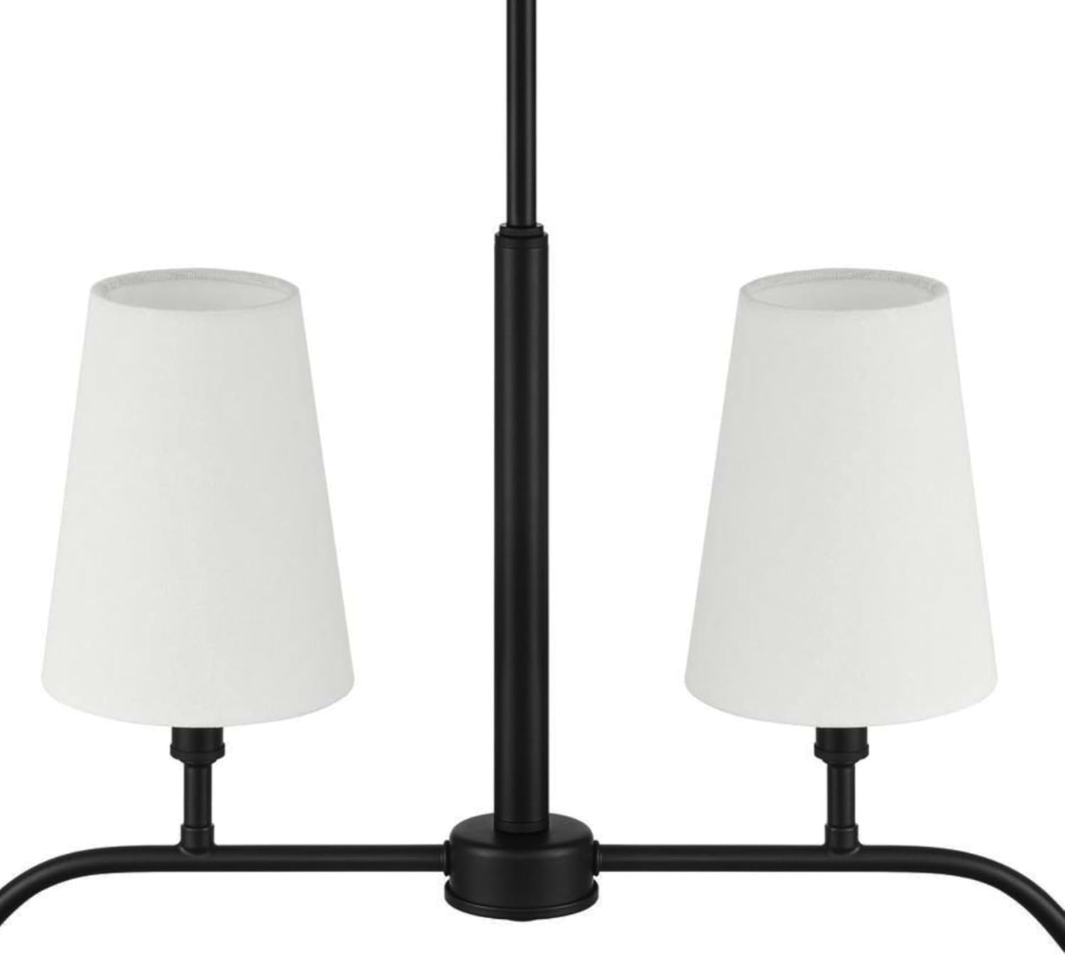 The 4-Light Island Pendant with white linen bell shades is perfect for adding a timeless touch to your space. Due to its clean and minimal design, this elegant matte black finish conveys an airy, luxurious feel. 4 candelabra poles are topped by a crisp white linen shade, designed to complement transitional, contemporary and traditional decor. Ideal for kitchen, kitchen island, dining room, living room and even high ceilings.