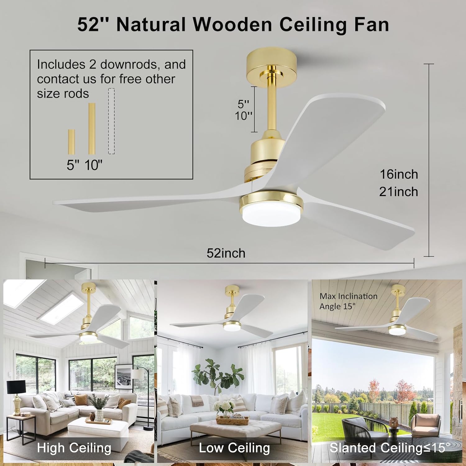 | Other Special Features of the Product | 3 Blade Wood Ceiling Fan with Light, 6 Speeds Reversible DC Motor, Ceiling Fan with Dimmable LED Light, Memory Function, Timer Setting |