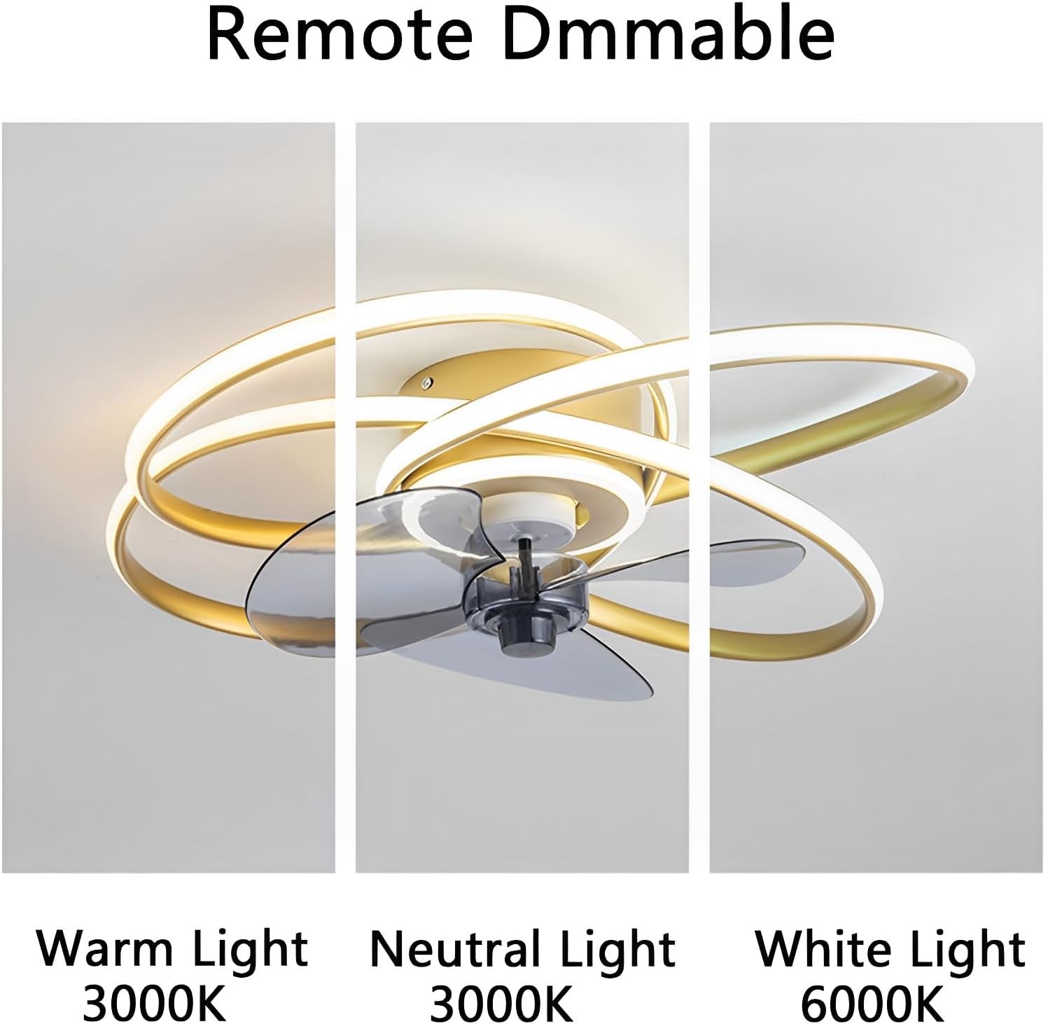 The Semi Flush Mount Ceiling Fan with Lights meets your living lighting, and it also satisfies your coolness, and has three wind speeds and three lighting modes to create a different family atmosphere. The parameters are as follows: Brand: IBalodyStyle: ModernColor: Gold,Dark (reference image)Shape: Round (Reference image)Material: Metal shell,ABS fan blade,Acrylic lampshadeSize: Diameter: 65CM / 25"Height: 17CM / 6.7"Power: LED light 42W Wind speed: 6 gear Fan blade: 3 piecesUse space: 10-18㎡Whether the wind speed is adjustable: yes (using the remote control, low / medium / high set around the third wind speed)Remote control: Including remote control Remote control distance:> 30mr Dimmable: Yes (adjust the color temperature and brightness of the light with the remote control)Light color: White light ( 6000 K ), Neutral light ( 4000 K ), Warm light ( 3000 K )Light source type: LED The package includes: 1 x Ceiling fan light 1 x Accessories package 1 x Remote control Scene: Remote ceiling fan with light for bedroom, living room, dinning room,kitchen, bunk bed, loft low ceiling rooms.Tips: The fan is easy to remove and, clean, when you do the cleaning, cut off the power, please.If you have any question ,please kindly contact us firstly,we are always here service for you.