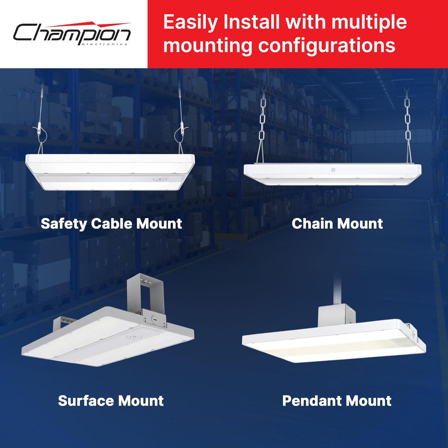 Bright, Efficient Lighting for Any SpaceTransform your facility with the Champion Electronics Tiny LED High Bay—the most advanced linear lighting solution engineered for serious industrial applications. This isn't just another LED fixture; it's a complete lighting system that delivers unmatched performance, efficiency, and reliability.Say Goodbye to Outdated FixturesOld, flickering lights drain your budget and disrupt workflow. With our linear high bay LED light, you can replace any outdated LED shop light with a modern, high-efficiency fixture that delivers brighter spaces, lower energy costs, and lasting reliability.Versatility You Can Count OnEvery space in your facility deserves the right fit. Use a linear LED light fixture to brighten wide areas, and rely on our LED linear high-bay lights when you need dependable light. With these LED shop lights for workshop, you get reliability you can count on every day.Designed for Your Everyday NeedsTake your lighting to the next level with our LED shop lights that pack serious brightness, durability, and efficiency into one sleek fixture designed for nonstop performance. Strong and dependable, they’re made to perform where you need them most.Built for Industrial Strength PerformanceCut energy costs without losing brightness. Our 150W high bay LED shop lights deliver powerful 5000K daylight clarity and reliable performance on 120–277V. Built for high-demand spaces, they balance savings and efficiency in every install and come backed by a 7-year warranty.Flexible Mounting for Maximum ConvenienceFlexible lighting that adapts to your space makes every task easier. With versatile mounting options, including a hanging shop light, installation is quick and hassle-free, keeping your facility productive from day one.Choose the Tiny LED Linear High Bay Light today. Your business deserves lighting that works as hard as you do.