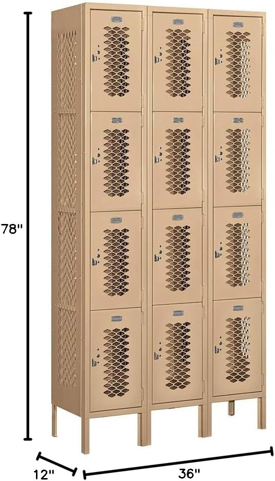 Salsbury Industries 74362TN-A 12" Four Tier Vented, 3 Wide x 6 Feet High x 12 Inches Deep, Assembled Metal Locker, Tan