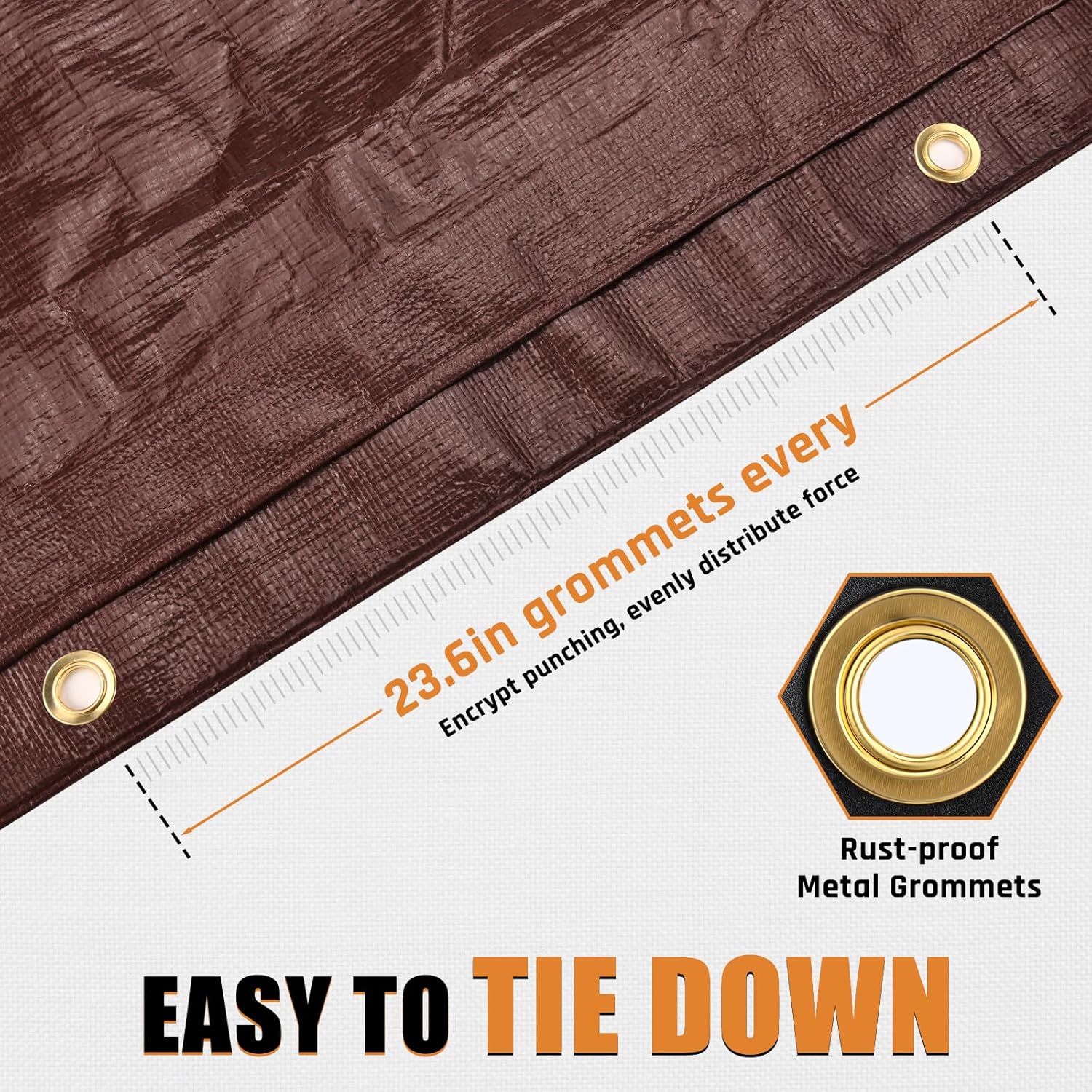 16x16FT Waterproof Tarp, Yumatum 10 Mil Heavy Duty Tarps with Reinforced Edges/Brass Grommets, 100% UV Blocking/Tear Resistant Poly Tarp for Camping, Patio, Tent, Boat(Brown/Black)
