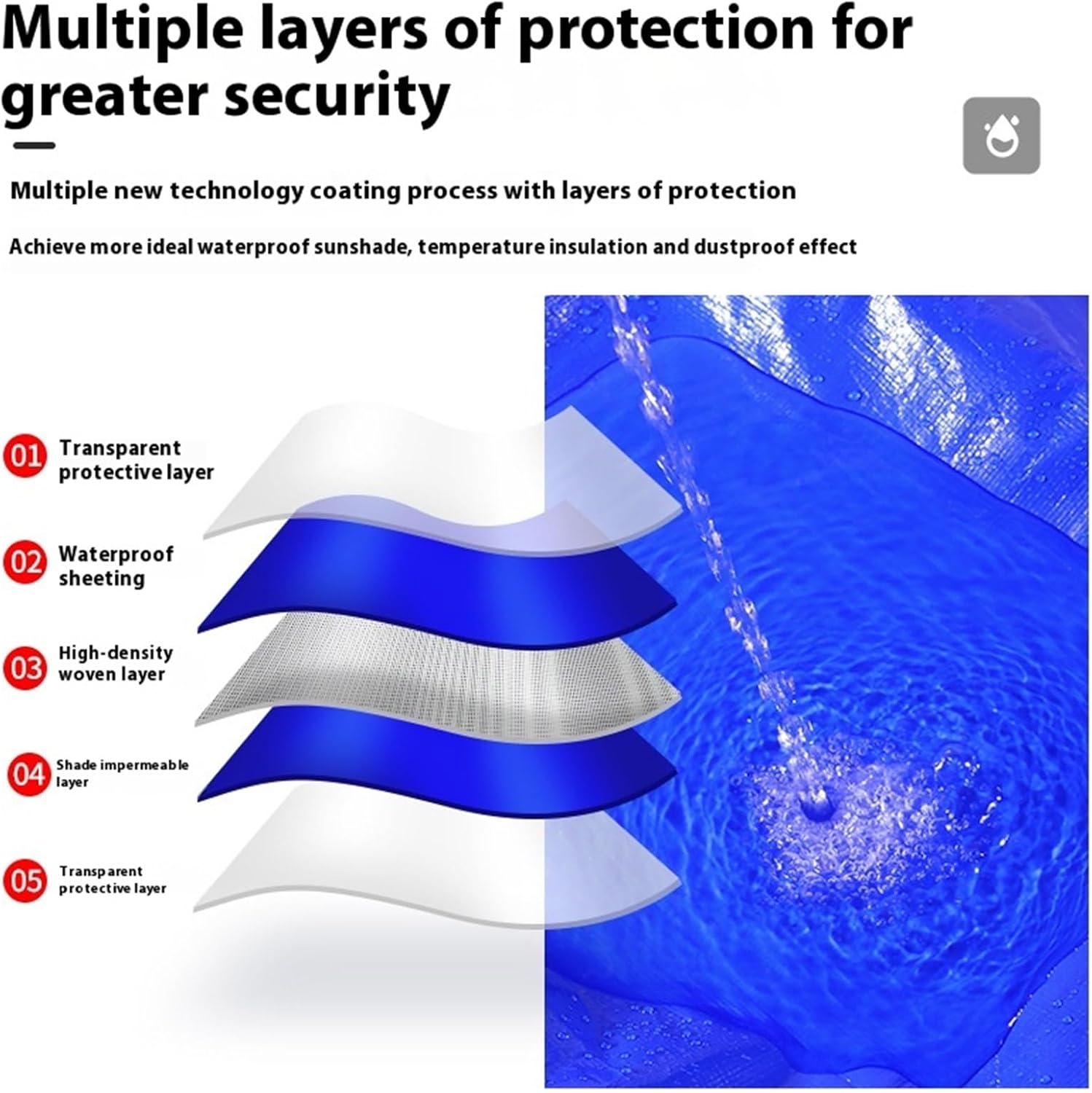 Outdoor Rain Shelter Tarp Heavy Duty Rain Covers With Reinforced Edges For Camping Picnics Weather Features Heavy duty tarp with double layer blue materials withstands 2000mm rainfall resistance, ensuring great protections against sudden downpours during outdoor activity.Reinforced tear construction longlasting than traditional sheets, maintaining structural integrity in harsh weather condition.Great for frequent campers, outdoor adventures enthusiasts, and family requiring rain shelter for recurring use.Perfectly serves as quick coverage for camping gear, picnics, garden furniture, and temporary outdoor event during unpredictable weather install requires notools, featured reinforced grommets and easy to use design for rain protections.Specifications:Component: Size Approx. 01 size 2x3meter/78.74x118.11inch, 02 size 2x4meter/78.74x157.48inch, 03 size 2x5meter/78.74x196.85inchType: 01/02/03Package Includes:1PC Rainproof coversNote:Please allow 1-2cm errors due to manual measurement. Due to the differences between different monitors, the picture may not reflect the actual color of the item.