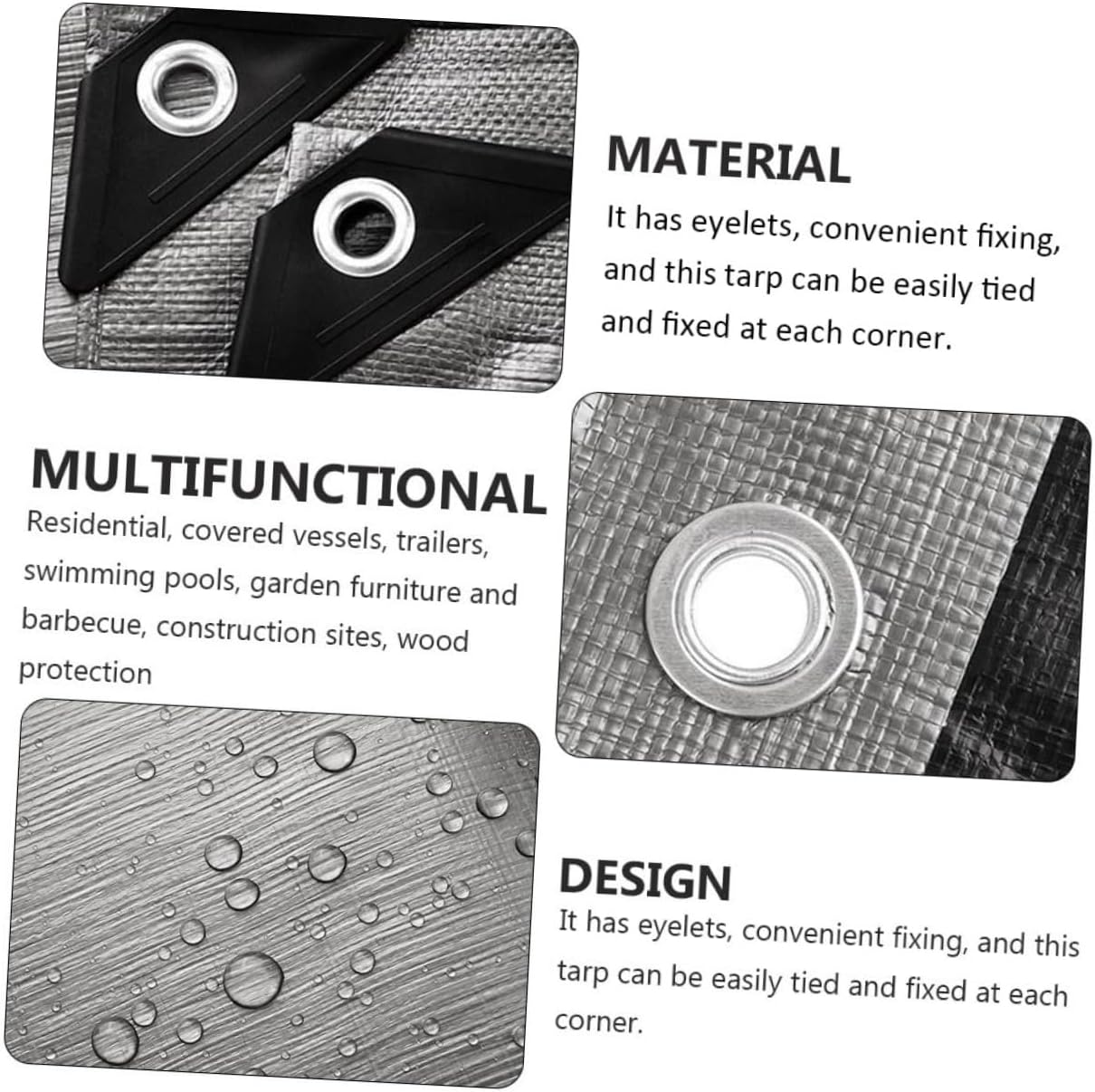Package Include 1 x Canopy Features - Color: Silver Plant Cover. - Size: 240 x 180 x 0.2 cm/94.32 x 70.74 x 0.08 inch Sun Protection Tarpaulin. - Material: PE Rain Proof Canopy. - Suitable for general cover tent , camping ground sheets, car covers, boat covers, machine covers, wood covers, windbreaks, covers, privacy walls, picnic mats, pool covers Rain Proof Tarpaulin. - It is applied to plants, potted greenhouses, livestock farms, poultry construction, granaries, kennels, etc Sun Protection Tarp. - Cover and protect your car, outdoor furnitures, or wood and building materials at construction sites Tarpaulin. - This heave duty tarp is made of high density weaving PE material, which is tensile and more durable Canopy. - , and , will not fade after long sunburn Plant Protection Cover.Goods DescriptionSun Protection Tarpaulin It is lightweight and can be folded for .Sun Protection Tarp So what are you waiting for? Come and buy it!.Plant Cover You can use it to cover vessels, trailers, swimming pools, garden furniture to protect them against , dirt and sun.Rain Proof Tarpaulin This item is a and sun protection tarpaulin