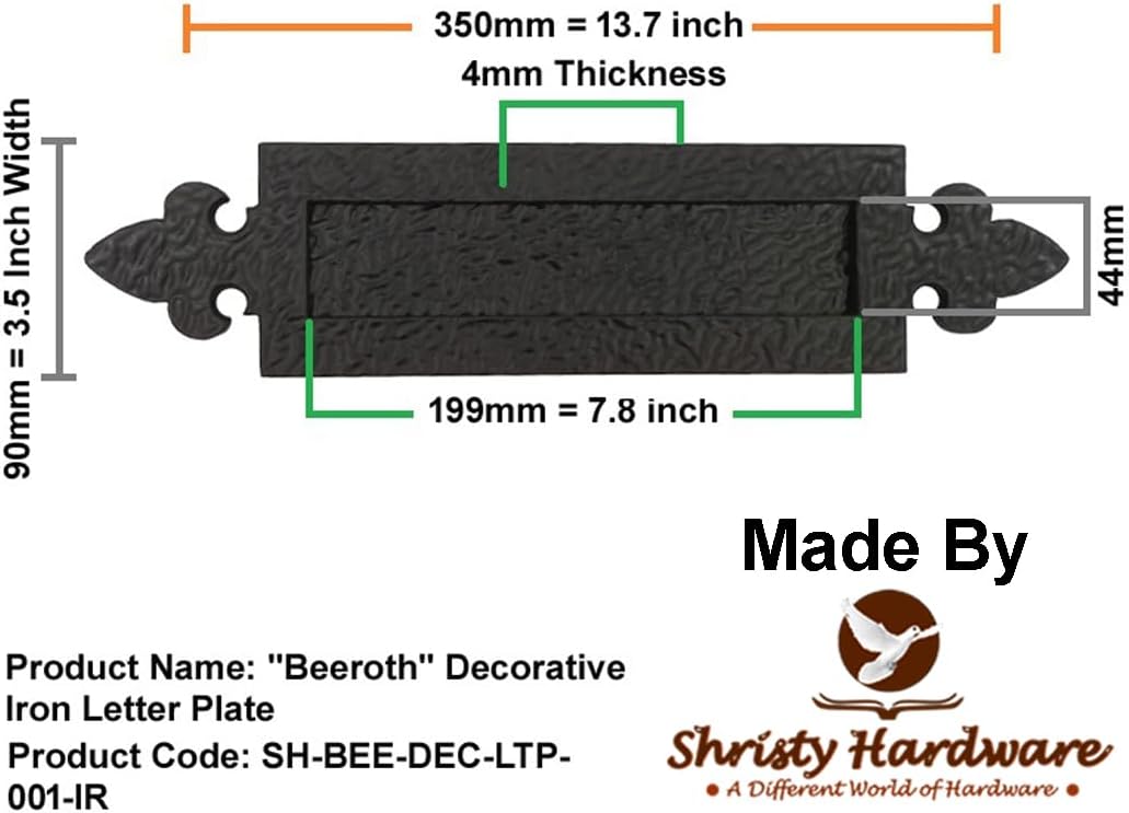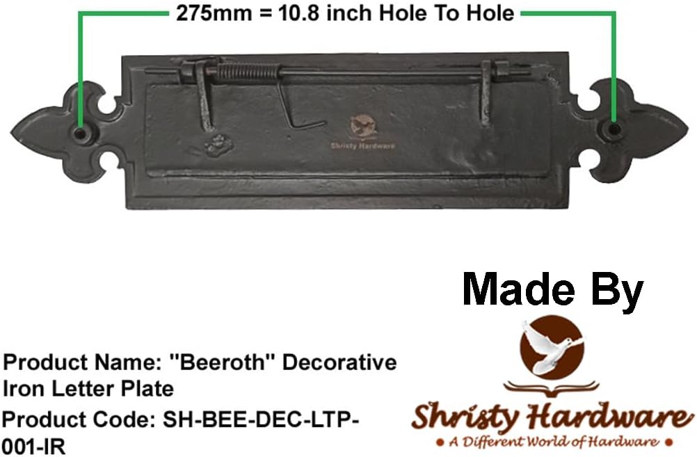 Transform your entryway with the Shristy Hardware 'Beeroth' Decorative Iron Letter Plate. This black powder-coated finish mailbox combines functionality with elegant design, making it a sophisticated addition to your home's exterior. The durable iron construction ensures longevity while resisting daily wear and tear from weather exposure. Its classic design features a generous slot to accommodate various mail sizes, from letters to magazines. The powder-coated black finish not only enhances its aesthetic appeal but also provides additional protection against rust and corrosion. Perfect for both traditional and modern homes, this letter plate offers a secure way to receive your daily mail while adding a touch of refinement to your doorway. Installation is straightforward, and the hardware comes complete in a pack of one. The timeless design ensures it will remain stylish for years to come while serving its essential purpose.