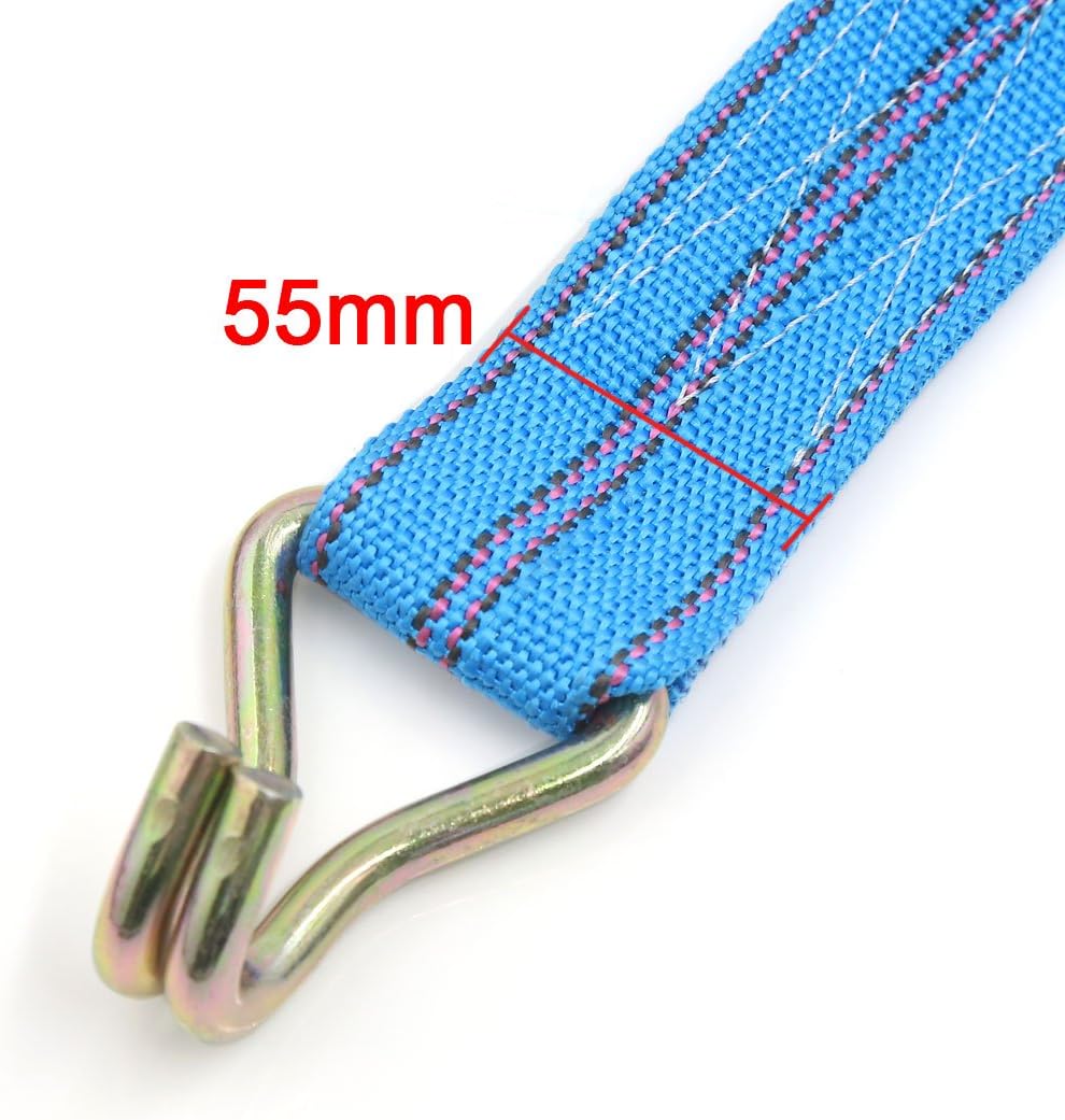 2.2" x 13ft Car Truck Cargo Luggage Ratchet Ratcheting Tie Down Strap Blue2.5 inch ratchet also be used with all 55mm wide webbing.The ratchet feature provides more with less effort. Long enough and powerful to tie things.Can be used to secure cargo on trucks and trailers.Easy One-touch, quick-release dual pawls ensures load stay locked and maintain during transit.These ratchet lashings are perfect for use with transportation, leisure use and commercial use.The main use of these ratchet lashings are for securing/lashing/strapping/fastening loads.The professionals all use ratchet lashings with claw hooks as it has many uses.The webbing in the ratchet lashings are made from polyester and the ratchets have a quick release mechanism.These are also known as Cargo Lashings And Bale Straps. for car scooter motorcycle tricycle boat Quad ATV pick-up truck or a small trailer to bind cargo. of polyester:More UV resistant than nylon or polypropylene.Stretches much less under load than nylon or polypropylene so you only have to tighten your load once.More resistant to water than nylon.More abrasion resistant than nylon or polypropylene.Note: Do not overload use!Do not put straps knot when using!Not designed for lifting!Keep straps away from sharp objects when using!