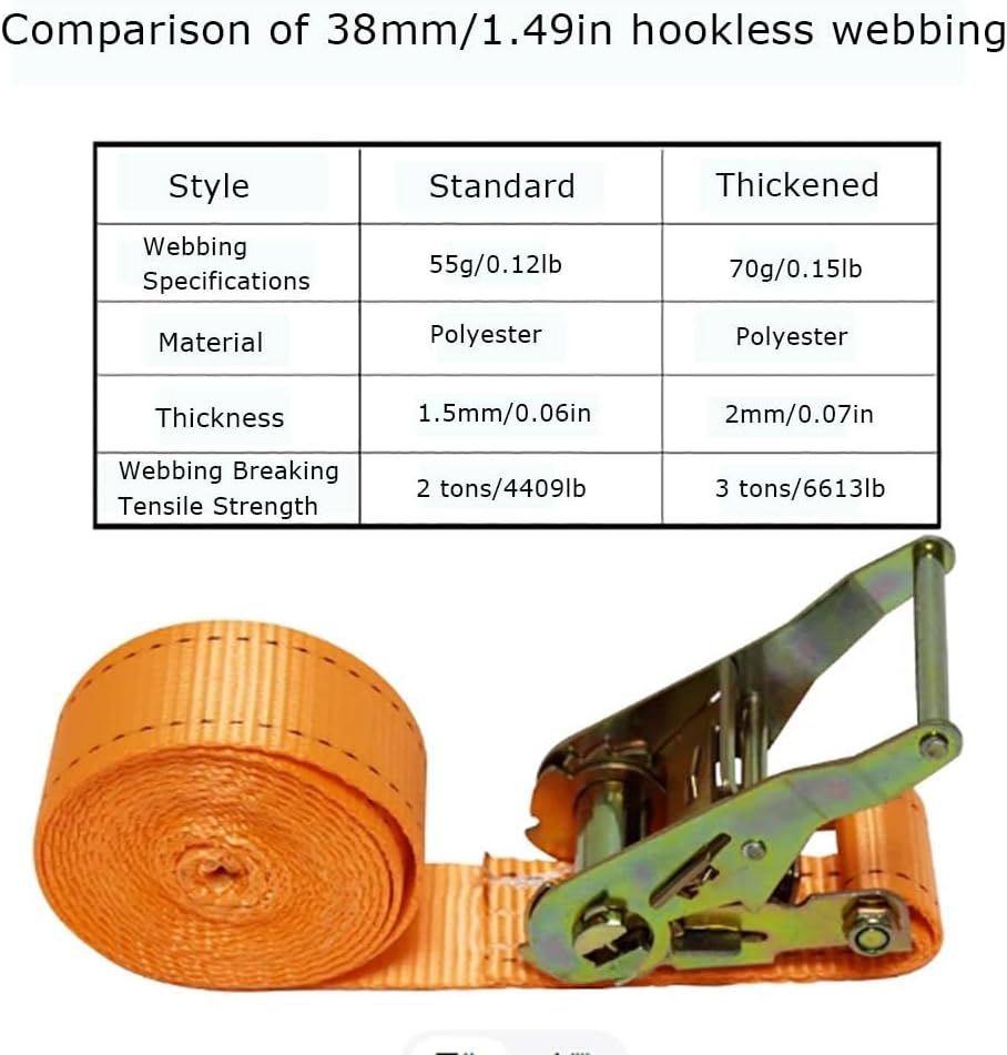 Our ratchet straps are made from rock solid materials The ratcheting mechamsim makes tightening these straps effortless and simple.Product SpecificationsProduct Name: Ratchet tie-down strapwidths: 3.8cm/1.49inAvailable Length:3.8cmx0.5m/1.49x19.6in , 3.8cmx1m/1.49x39in , 3.8cmx1.5m/1.49x59in , 3.8cmx2m/1.49x78.7in , 3.8cmx2.5m/1.49x98in , 3.8cmx3m/1.49x118in , 3.8cmx4m/1.49x157in , 3.8cmx5m/1.49x197in , 3.8cmx6m/1.49x236in , 3.8cmx7m/1.49x275in , 3.8cmx8m/1.49x314in , 3.8cmx9m/1.49x354in , 3.8cmx10m/1.49x393inAvailable specifications: Standard version, Thickened versionMaterial:steel, PolyesterNote: All measurements are taken manually and there may be an error of,approximately 1-3cm Please consider this before purchasing